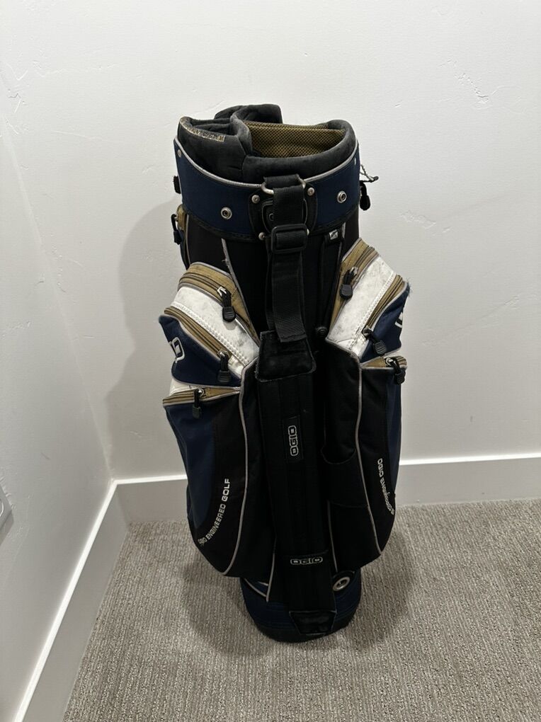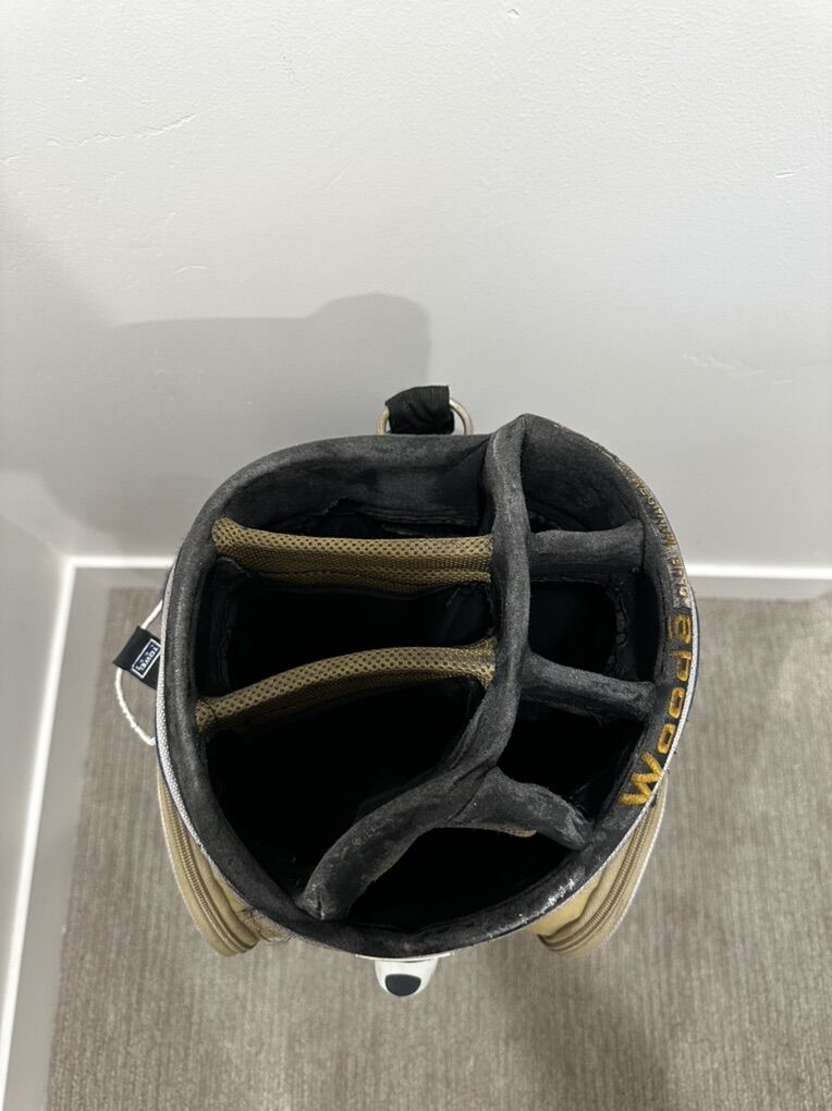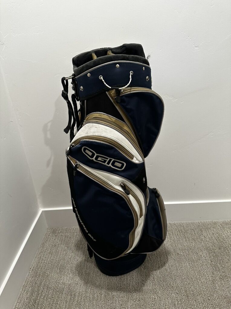 Good bag with lots of pockets and a cooler pocket. A little wear but still in good shape. All the zippers work as well.