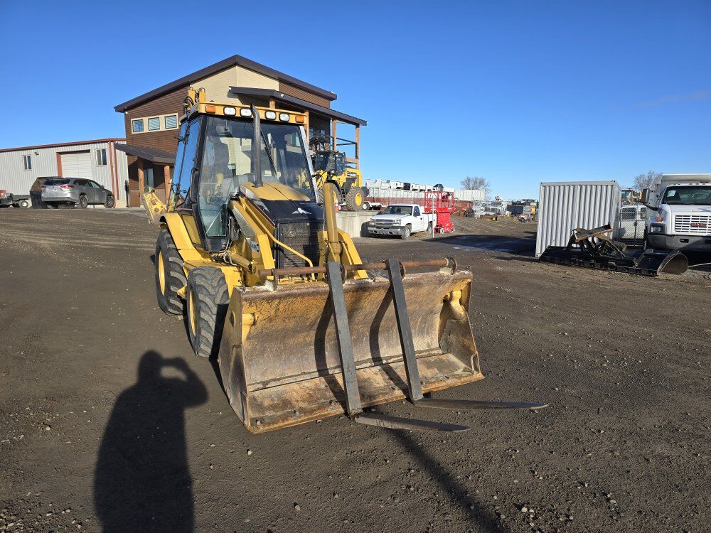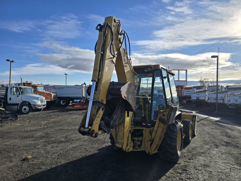 2004 CAT 416D 4wd Extendahoe Backhoe, CAT diesel engine, 3,800 hours, four wheel drive, shuttle shift transmission, 4-in-1 clamshell front bucket, hook in forks, four stick backhoe controls, 18 inch and 36 inch digging buckets, good tires, former municipal machine 208-734-3434
