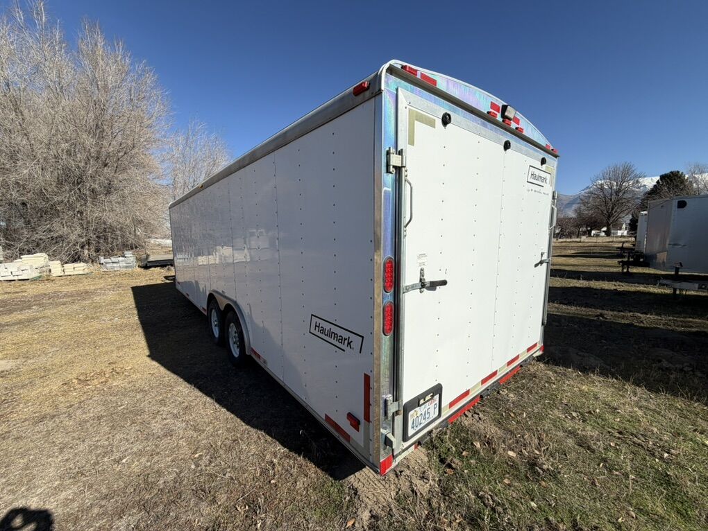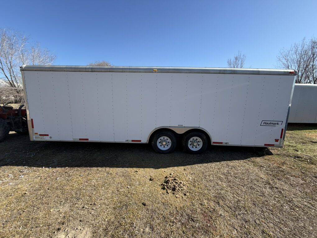 24 foot Haulmark race trailer 8.5x24’ Very good condition inside and out. Finished interior, white walls, white ceiling gray floor