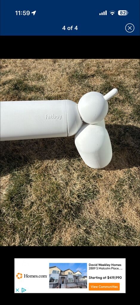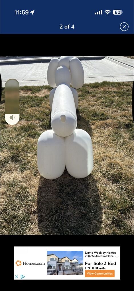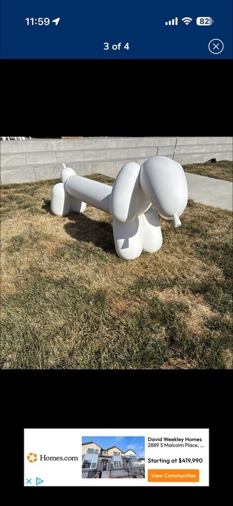 ApplePay“Fatboy” Oversized modern balloon-dog style outdoor bench. Clean white finish, stored outdoor in used condition. Purchased about a year ago, need to sell because we are moving.