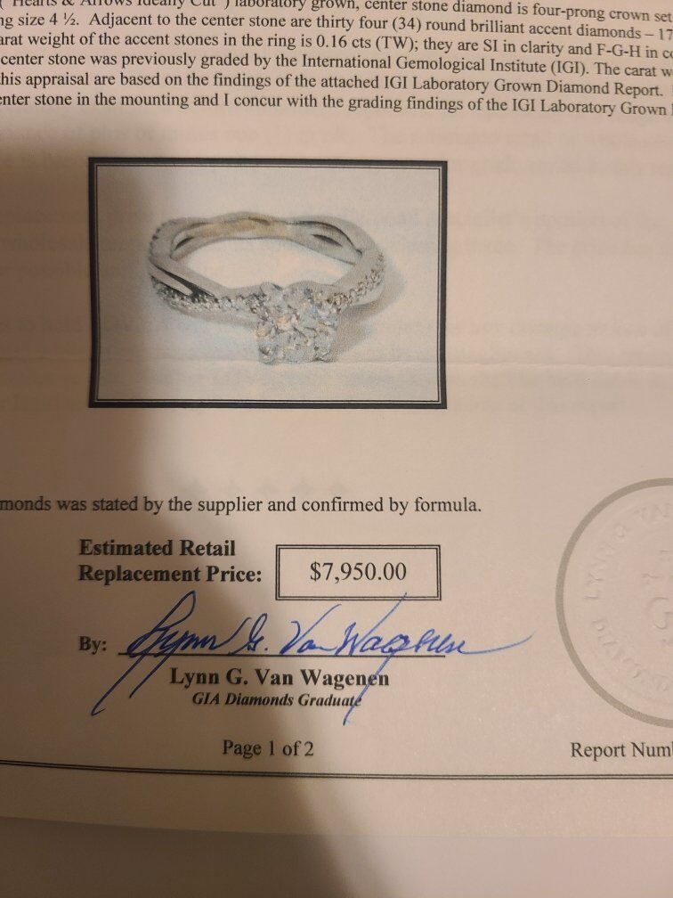 Diamond and gold ring are sold as set. Retail value of both the diamond and gold in 2022 was $7,950. The value of item increased since 2022. Currently asking for $8,000.