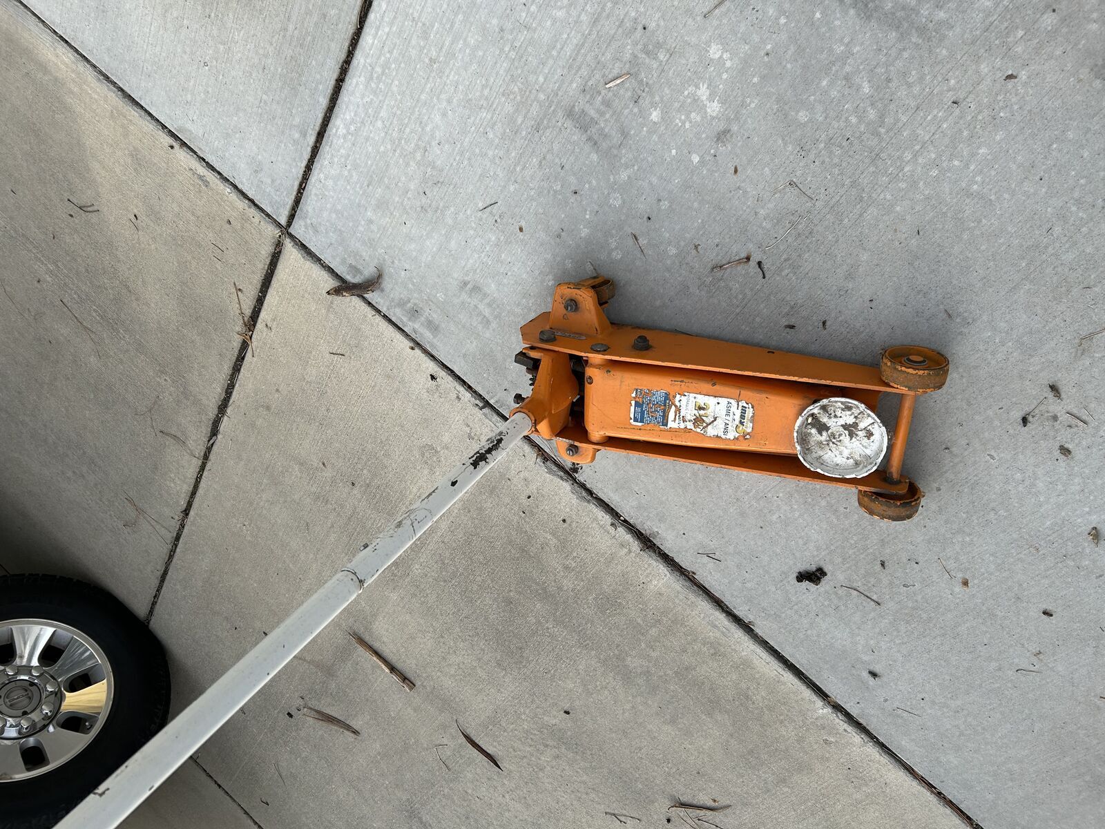 All steel car jack. Works well. Does not lose pressure. Too heavy for this old man.