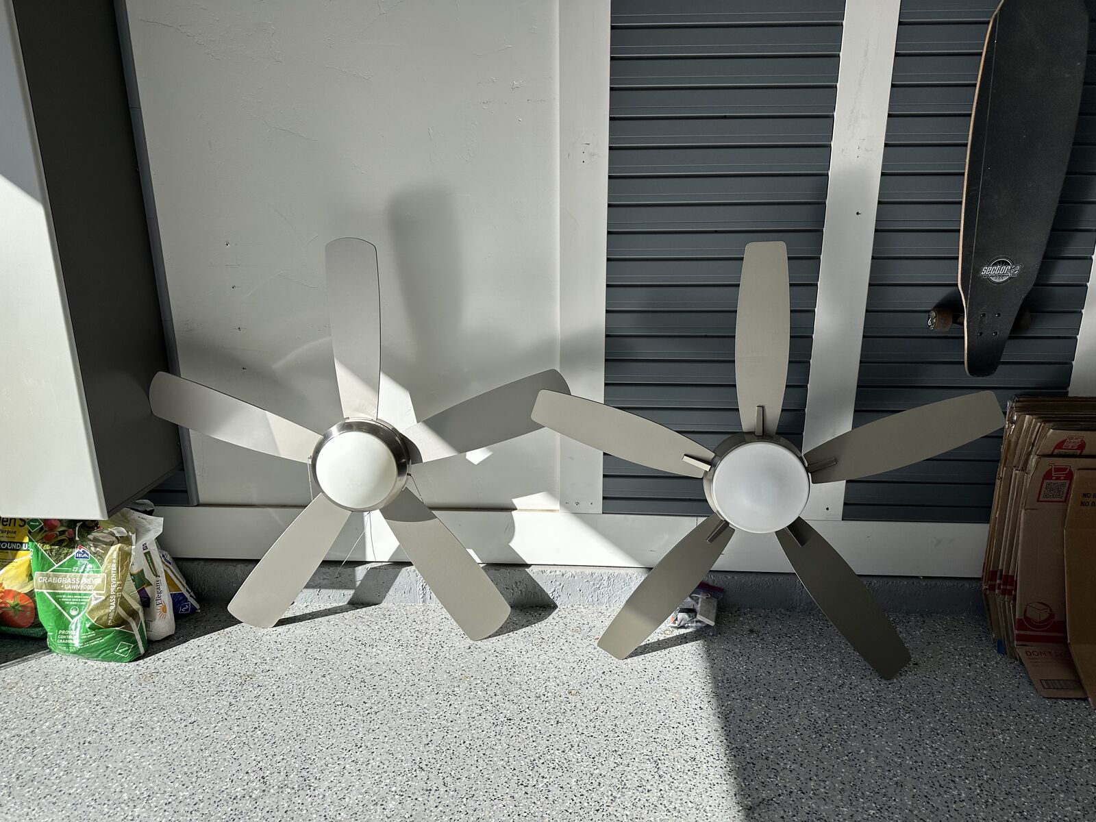 VenmoI think these are both Hampton Bay fans. They work like new. We just decided to replace with a different style. One comes with a remote control. No missing parts. They are approximately 52 inches wide. $40 each or $60 for both.
