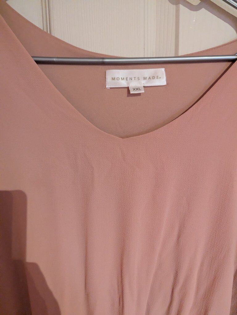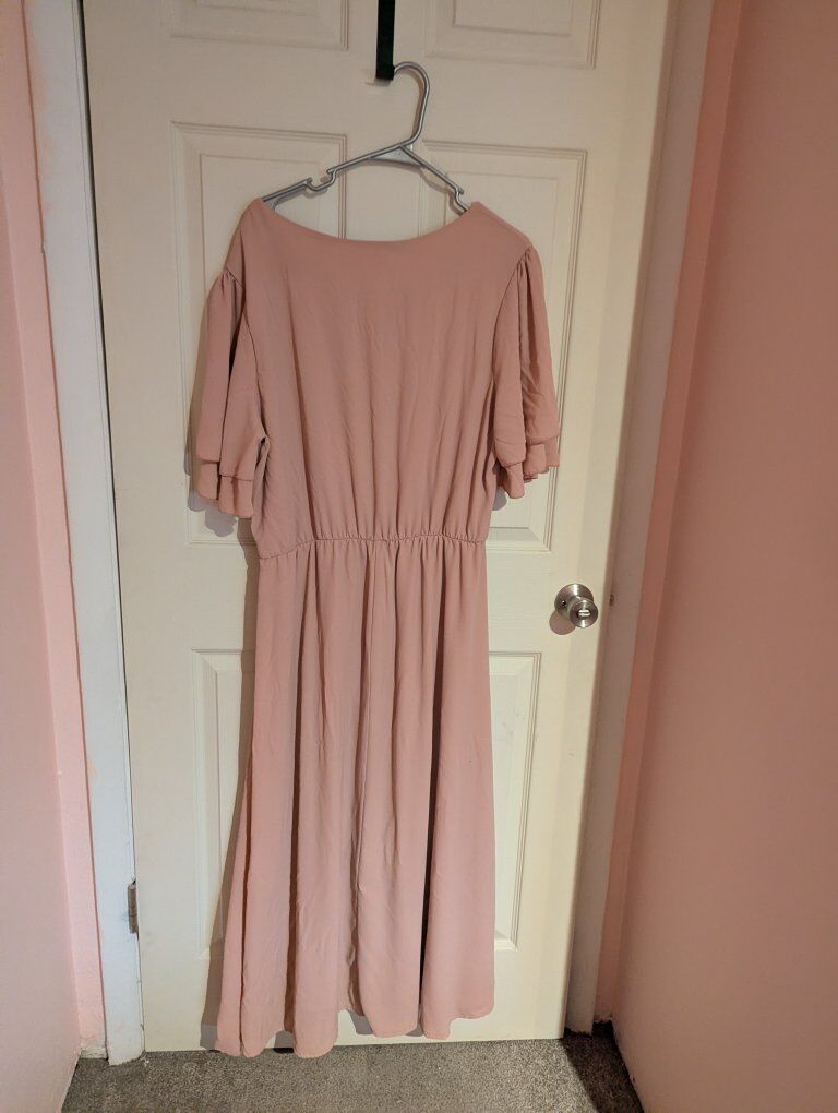 modest formal light pink dress. It has been tailored to fit a petite size and it is a size XXL. pick up at a public place