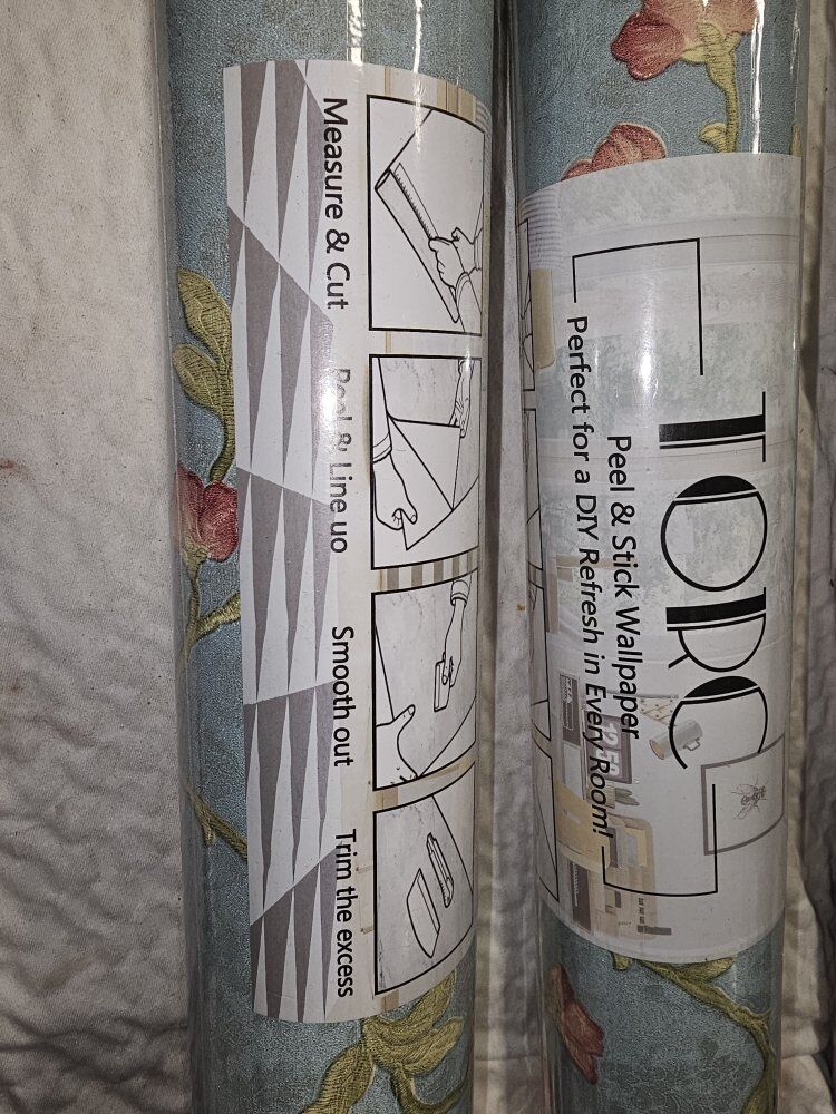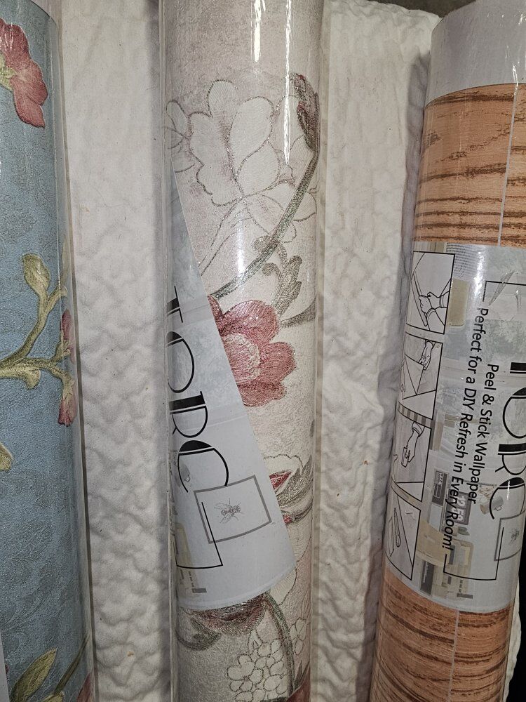 GooglePayI have 4 rolls total. 1 wood, 1 white floral and 1 light blue floral. they are 21" wide and I'm not sure how long but they are huge rolls. 3 1/2 inch diameter. $15/each