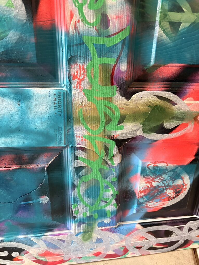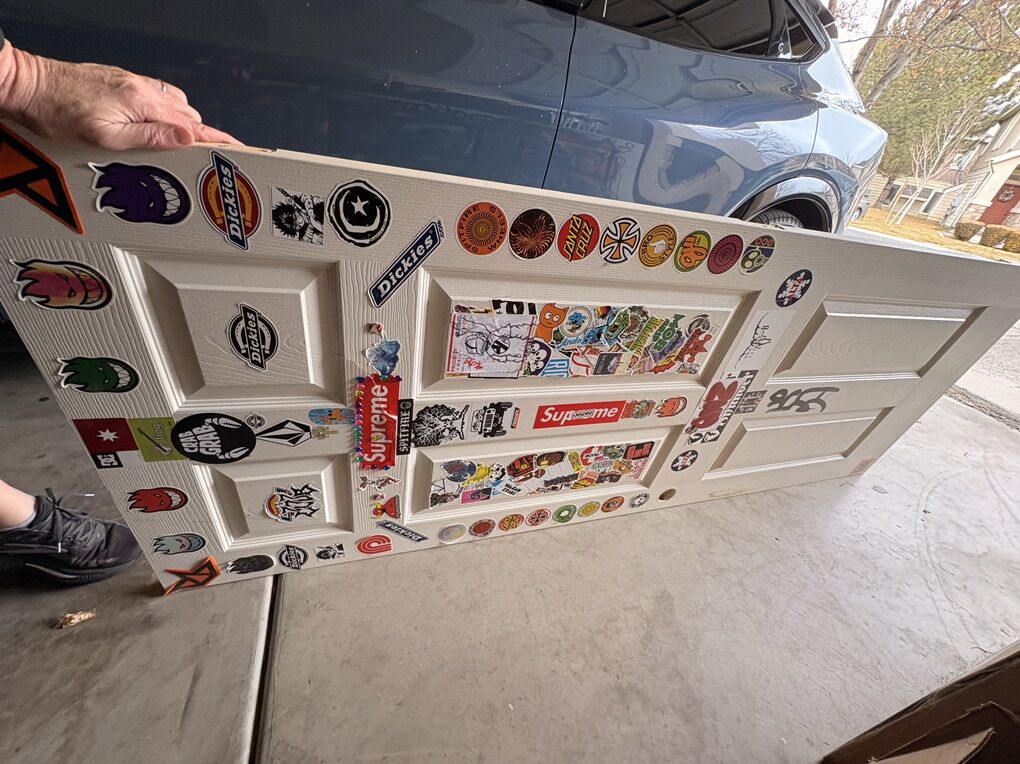 I have the standard size interior door that has a crack in it and a lot of stickers and spray paint graffiti.