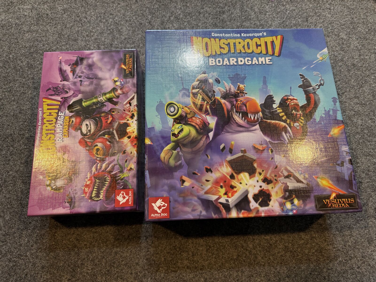 The game is played in a series of 5 rounds that each last 2 minutes. During the round each player rolls simultaneously 4 dice and resolves them fast, activating their monster's abilities. You keep moving through the city, destroying buildings while defending against the city's turrets and Dr. Spotnik's obstacles (tanks, helicopters, road blocks, etc). Depending on how well you perform and whether you manage to reach certain milestones, you gather Victory Stars. The goal of the game is to gather all three Victory Stars for a complete and total victory!