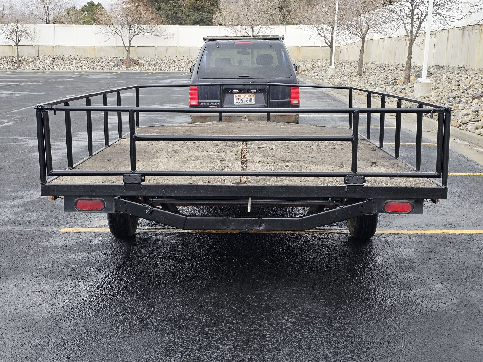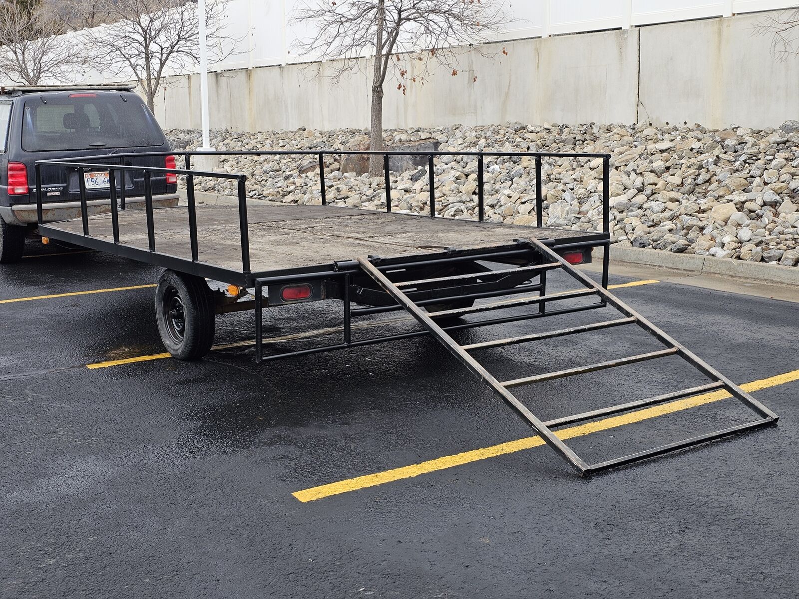 VenmoThis has been a great multi-purpose trailer. It's an 8' x 14' flatbed with a 3000 lb axle. The tires are in good condition with plenty of life left in them. It has a ramp for loading and unloading ATVs, motorcycles, snowmobiles, etc, which stores underneath. The lights function properly and utilize a four-pin connector. It has a swivel jack and fits a two-inch ball hitch.