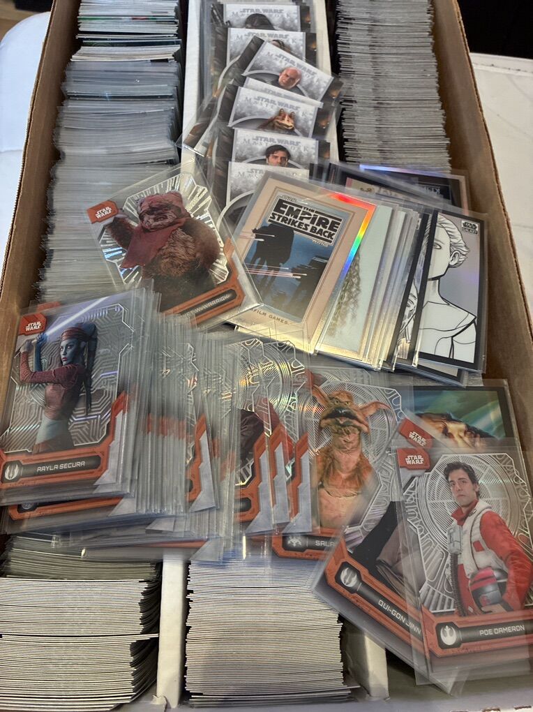 Up for sell is a box of Star Wars base lots of chrome, Chrome galaxy High Tek Masterworks No CODES