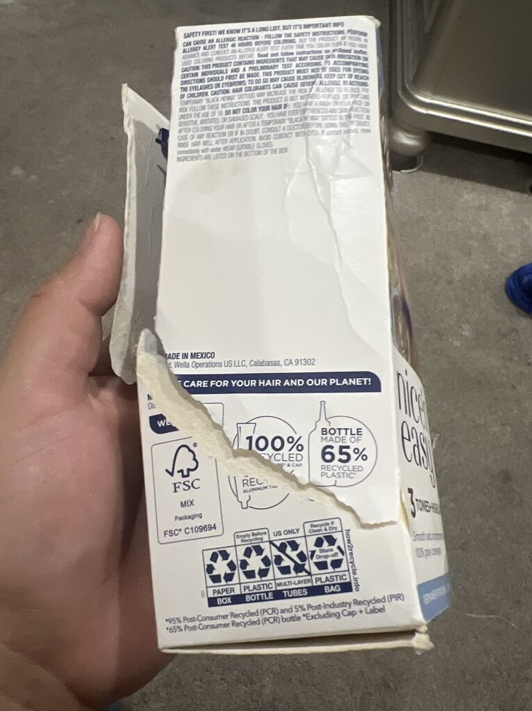 Box is torn due to my daughter grabbing it I bought too many for my hair and this was left. FREE!