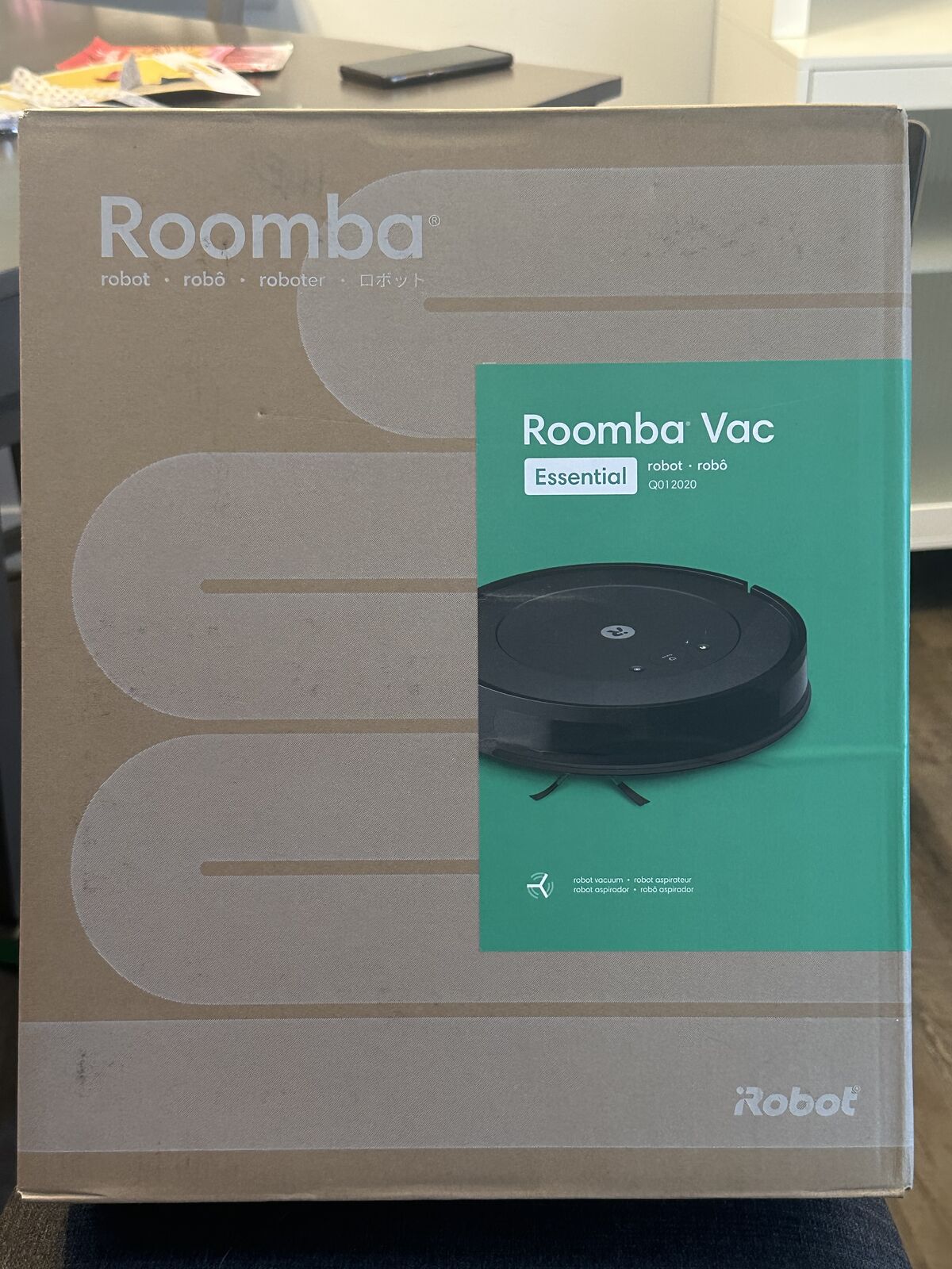 Brand new iRobot Roomba Vac Q01, never opened and still sealed in the original box. Features smart navigation for neat row cleaning, strong suction for everyday dirt and pet hair, and works on hardwood, tile, and low-pile carpet. Connects to the iRobot Home App for scheduling and remote control, with Alexa voice support. Automatically returns to the charging dock when finished.