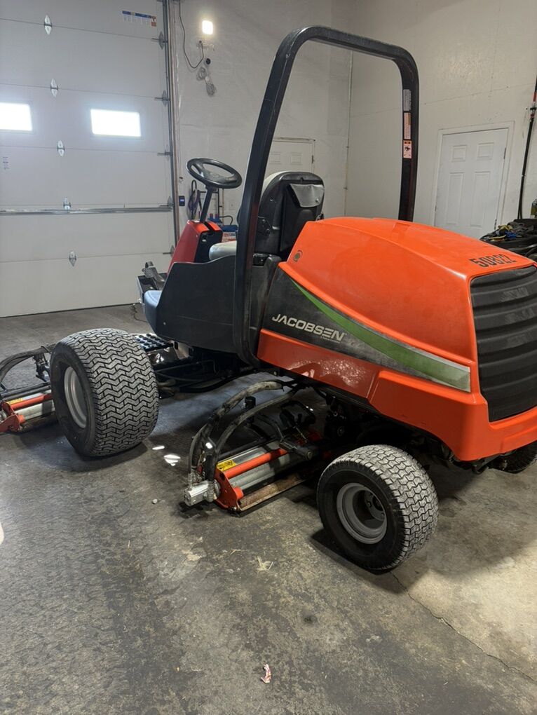 2008 Jacobsen LF3400 professional fairway mower in great condition. Powered by a Kubota 4-cylinder diesel engine, this mower runs strong. Equipped with hydraulic lift for the cutting reels and delivers a smooth, consistent cut. This mower currently has 5,171 hours and is still operating as it should. The reels will need to be sharpened.