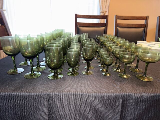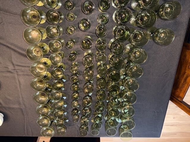 12 QTY each of: 6oz Martini Glasses, 4oz. Wine Glasses, 10oz Wine glasses, 4oz Martini Glass, 1oz. Port Glasses.
