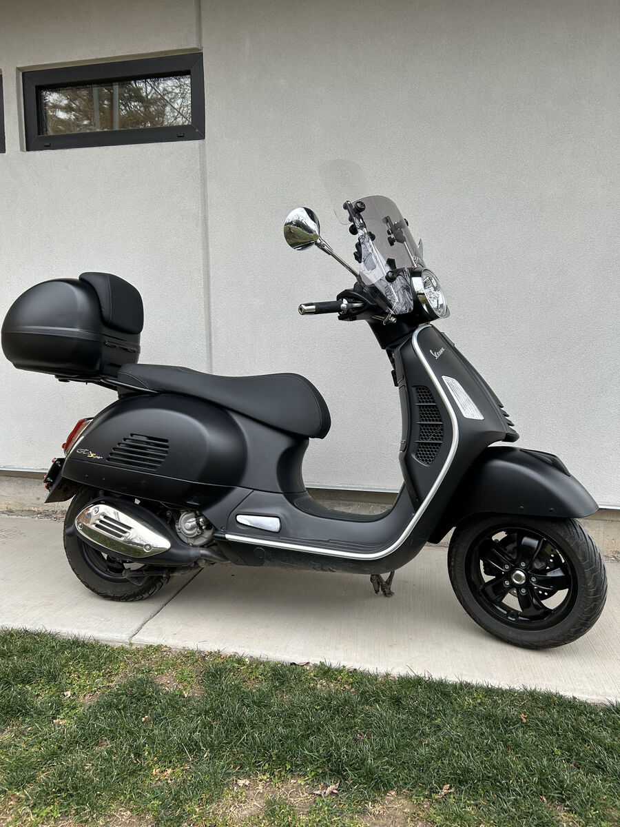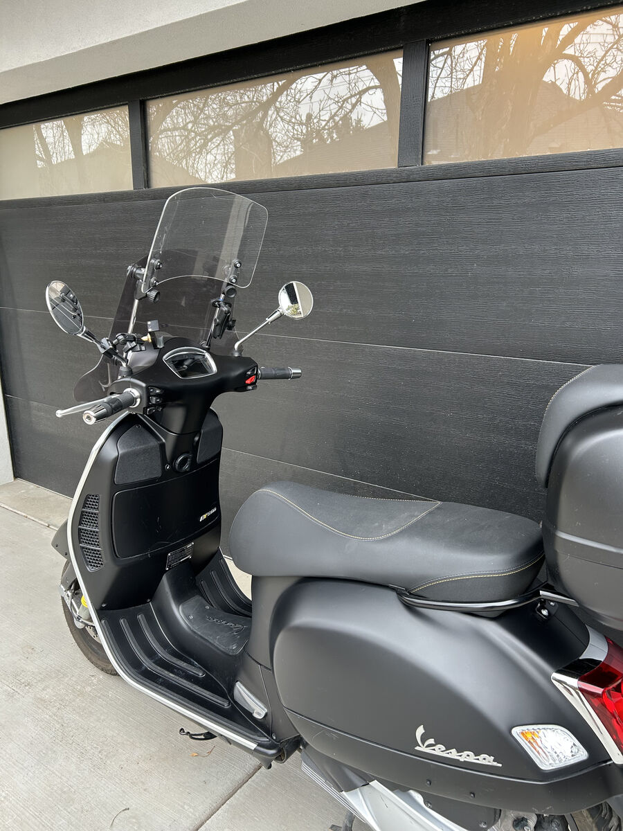 Venmo2021 Matte Black Vespa 300 Super Tech, like new. 2,700 miles, storage case, windscreen, phone holder, cup holder, new battery in 2025, tires are in great shape. Runs like new. Has lived in a garage her whole life (when she's not out for a ride). Never crashed, fallen over or been banged up.