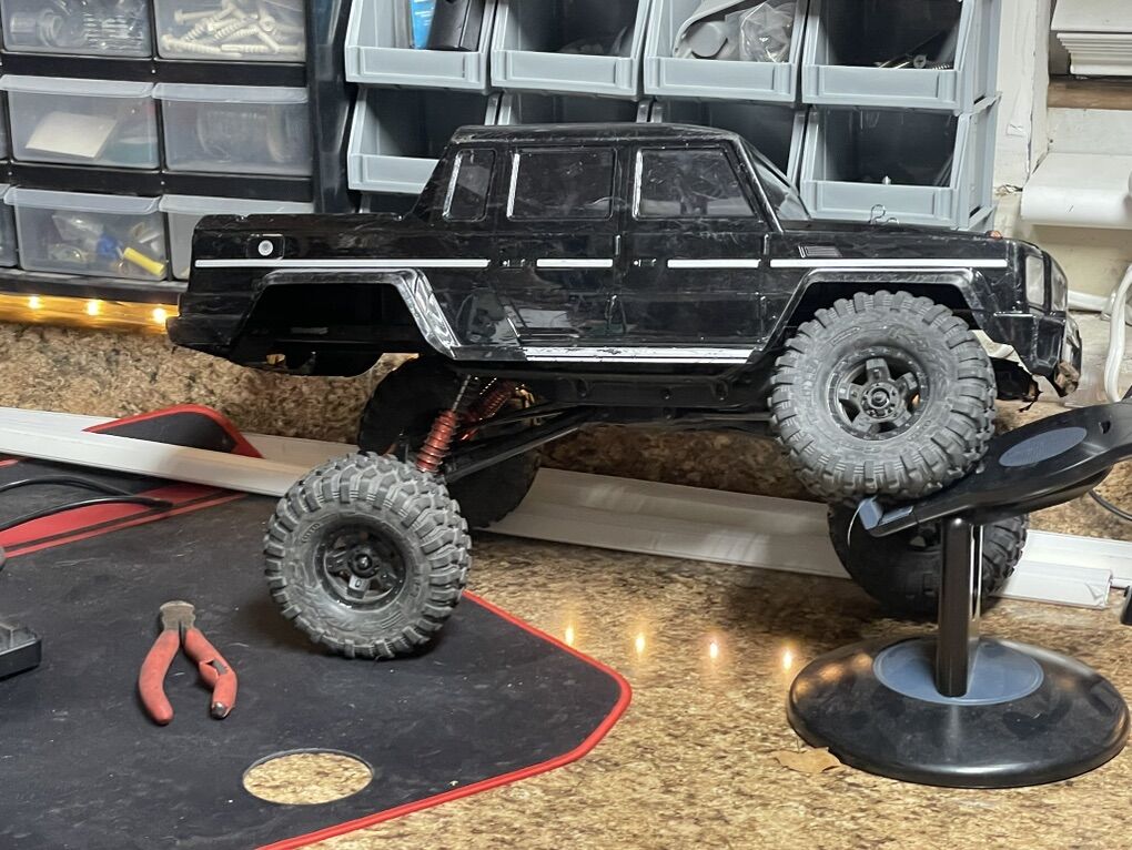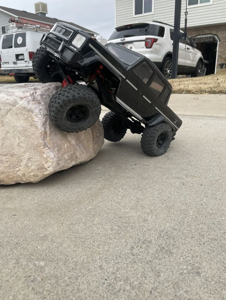 ApplePayWorks great trx4 sport comes with remote, battery charger relocated rear shocks for more flex upgraded shocks 45kg servo open to trades for 1/18 scale crawler 270$ obo Wheels and tires and brass diff cover NOT included