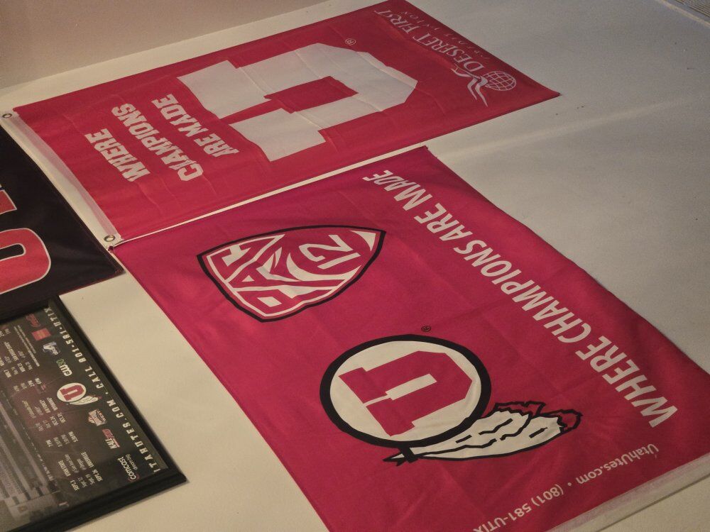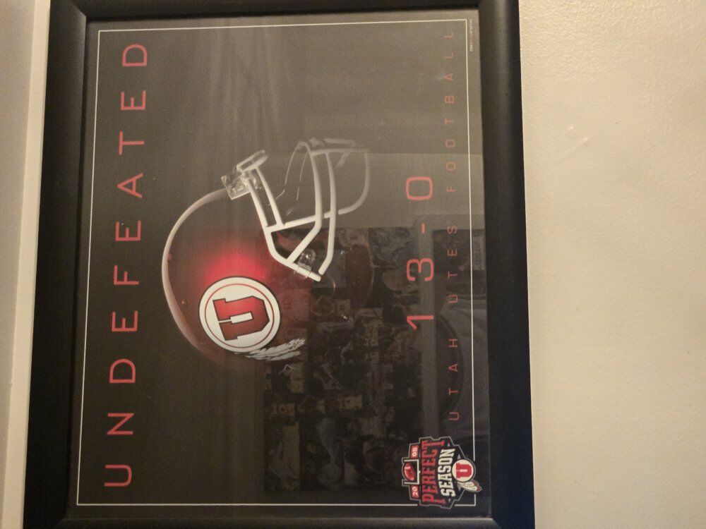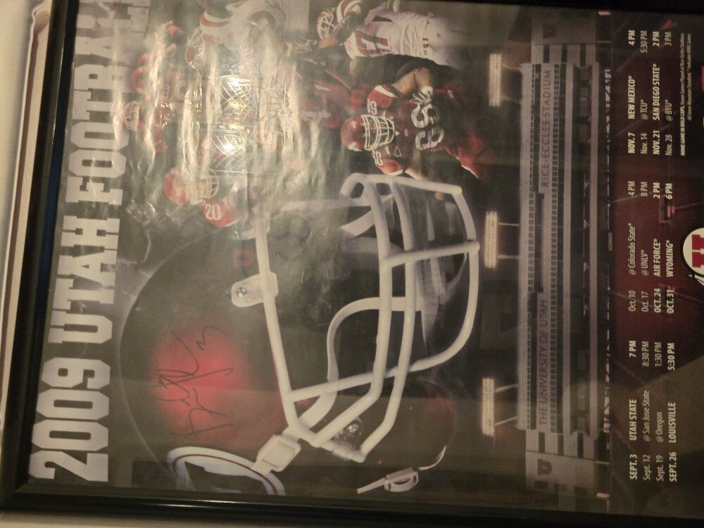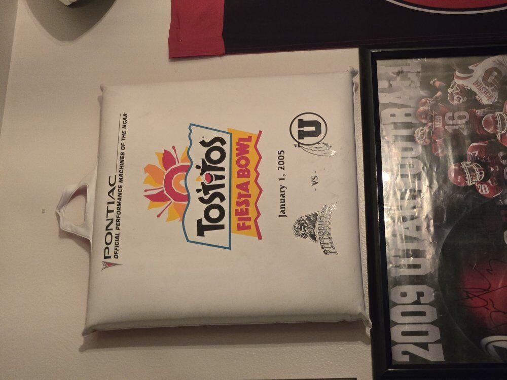 Signed 2009 poster Undefeated 2008 picture 3 flags 2 footballs 1 cushion from the 05 fiesta bowl