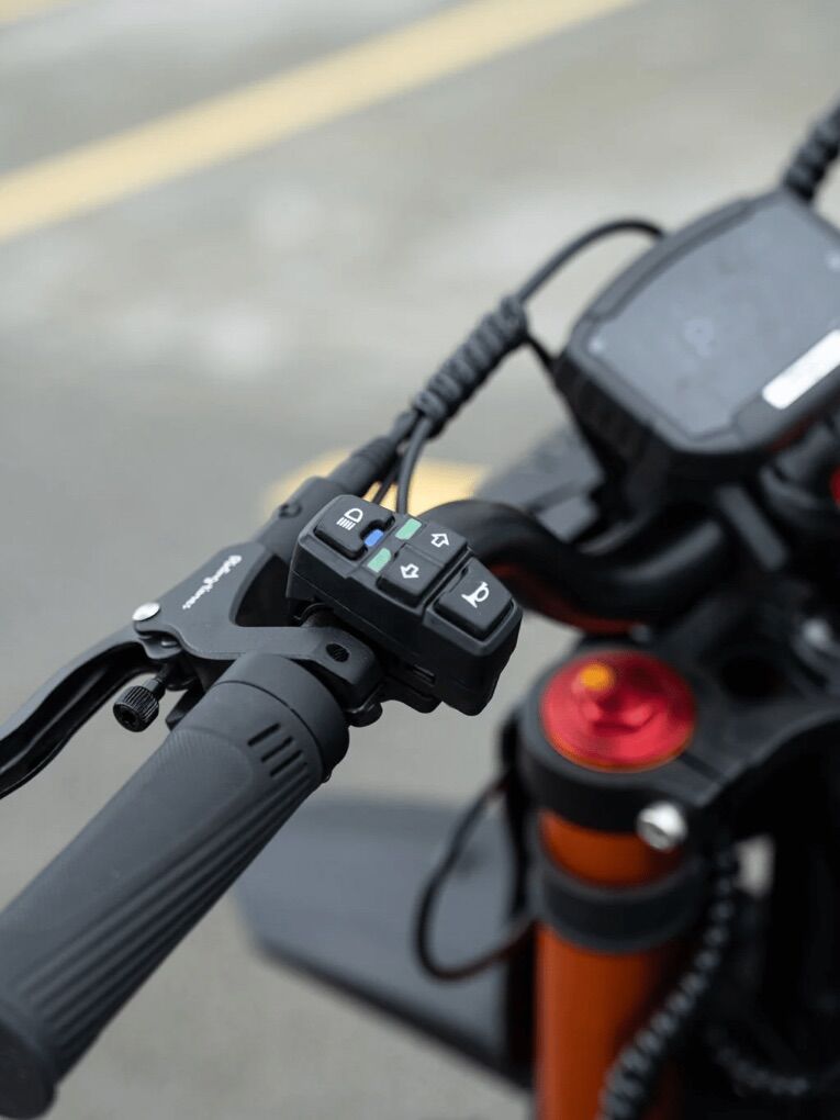 Top speed: up to 40 mph Motor: high-torque hub (2,000W peak) Range: up to 62 mi per charge Battery: 48V 27Ah removable (UL 2849) Charge time: ~8.5–9 hrs (54.6V/3A) Controller: 48V/38A Fardriver Torque: up to 290 N·m (wheel edge) Brakes: hydraulic discs + electronic assist (F/R) Suspension: inverted fork + rear shock Tires: 60/100-14 front · 60/100-12 rear Lighting: LED headlight, taillight, turn signals Display/controls: LED dash, full-twist throttle, PAS (3 modes × 5 levels) Ride modes: ~15 mph · ~22 mph · up to 40 mph Weight / Max load: ~105 lb / 265 lb