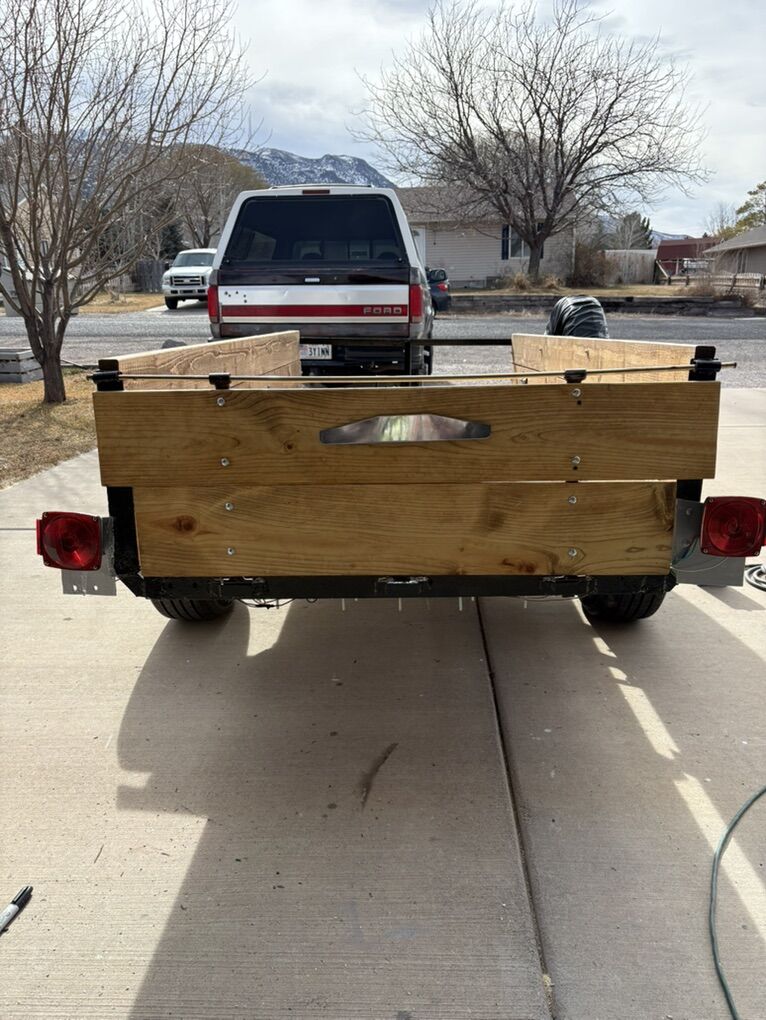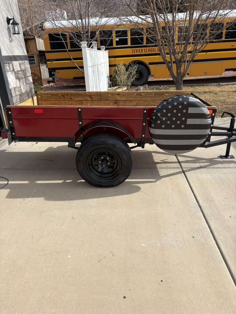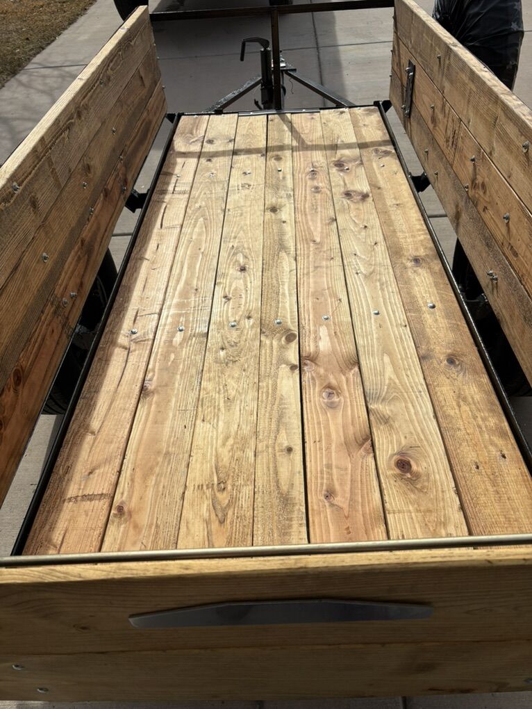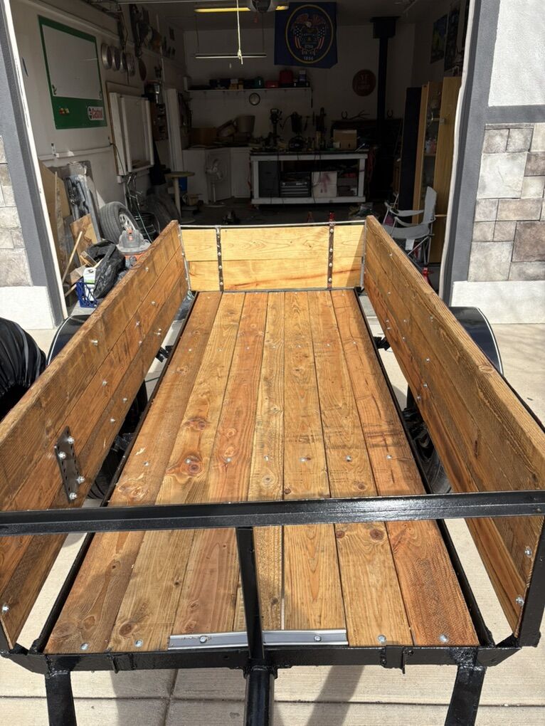 All new lumber, lights, wiring, trailer hitch for 2” ball. Good tires and new paint. Tongue jack. The wood has been treated to protect from water. Nice trailer ready to roll.