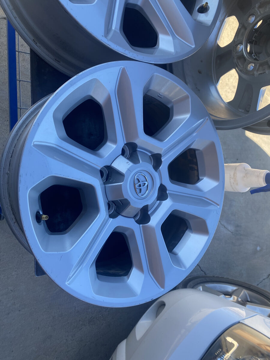 Venmo4 Used wheels, fit Tacoma, 4runner's and older Tundra's and Sequoa's and Luxus suv's. Some curb rash as seen in photos, otherwise they are in great shape, center caps included, no lugs nuts.