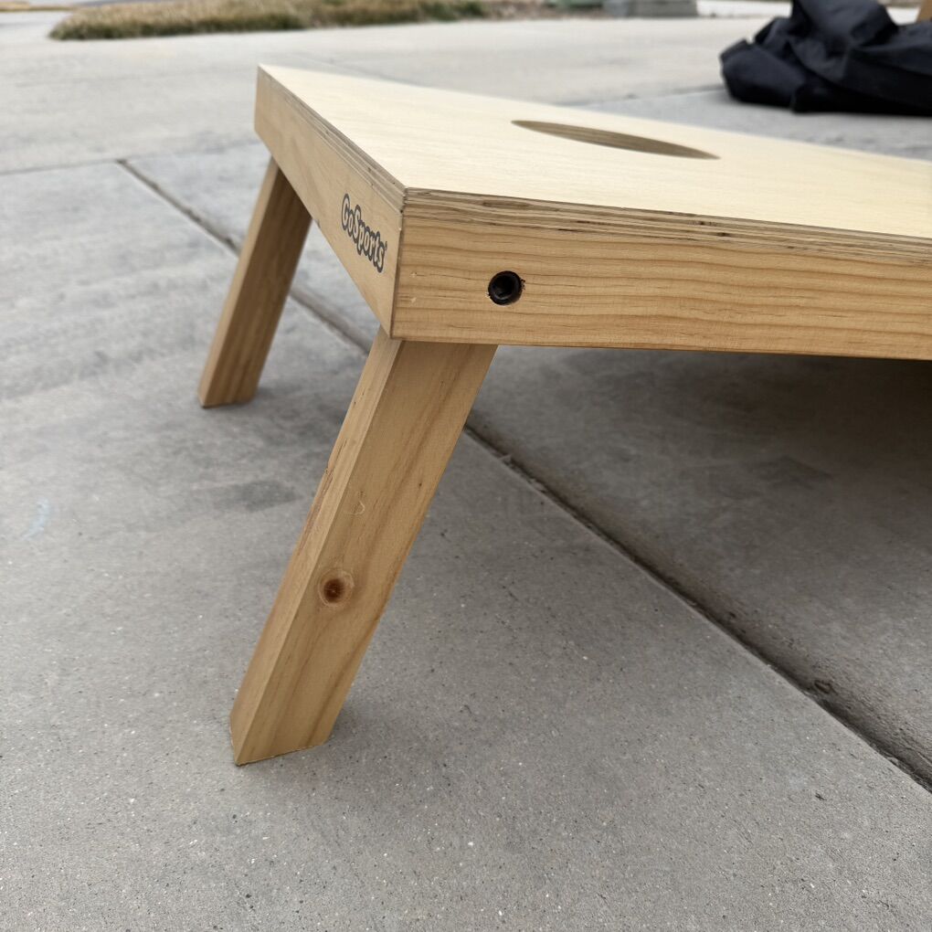 ApplePayBoard size: 16” x 23.5” Cornhole bags included Sturdy, smooth playing surface Great for backyard, tailgates, camping, and events Portable, easy to store and transport