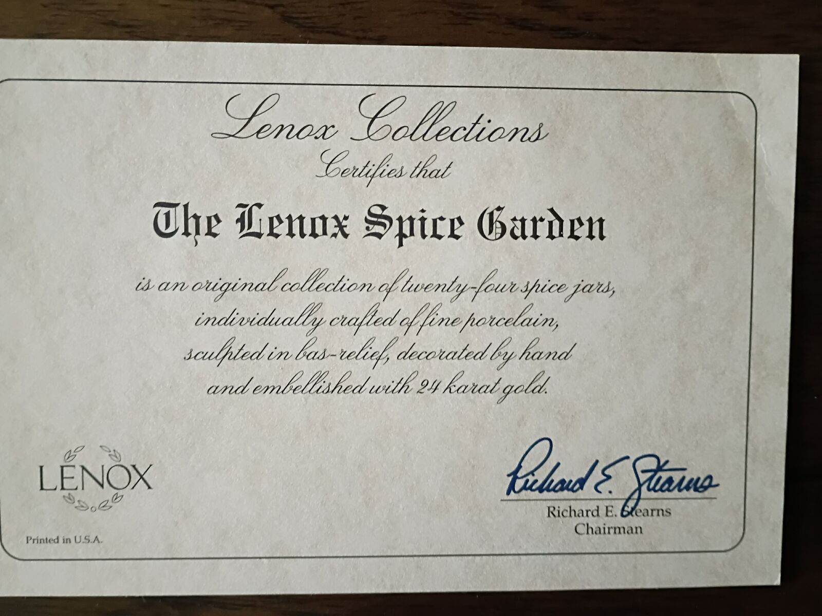 Original 1992 collection of 24 spice jars, with Lenox Collections Certificate