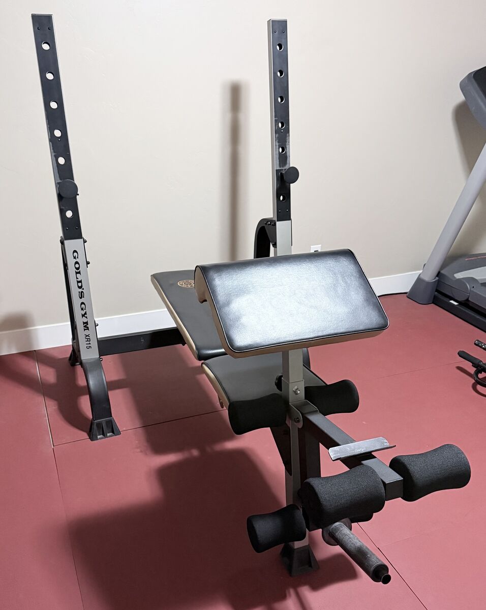 VenmoGold’s Gym XR15 weight bench system in great condition with only minor cosmetic wear from normal use. This is a versatile all-in-one setup that includes: