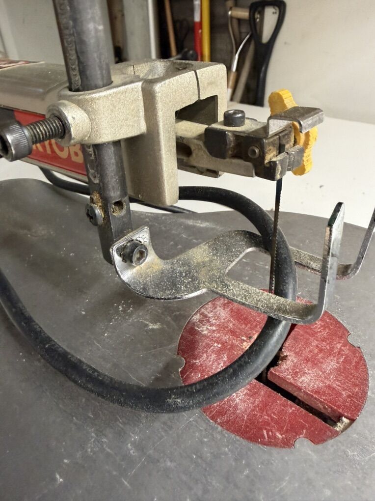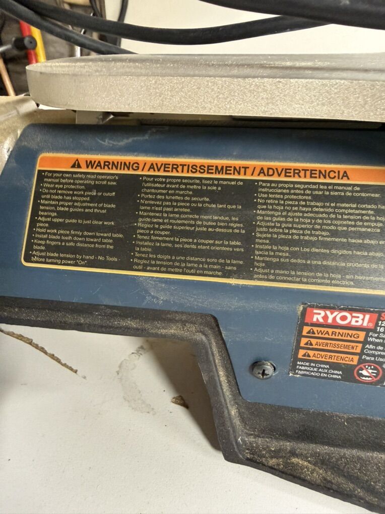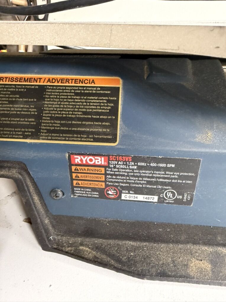 Capacity: 16-inch throat depth for larger projects. Speed: Variable speed control (550 - 1600 SPM). Motor: 1.2 Amp motor. Table: Aluminum, tilts 0-45° left. Blades: Accepts 5-inch pinned and pinless blades. Features: Integrated dust blower, dust port, and keyless blade changes.