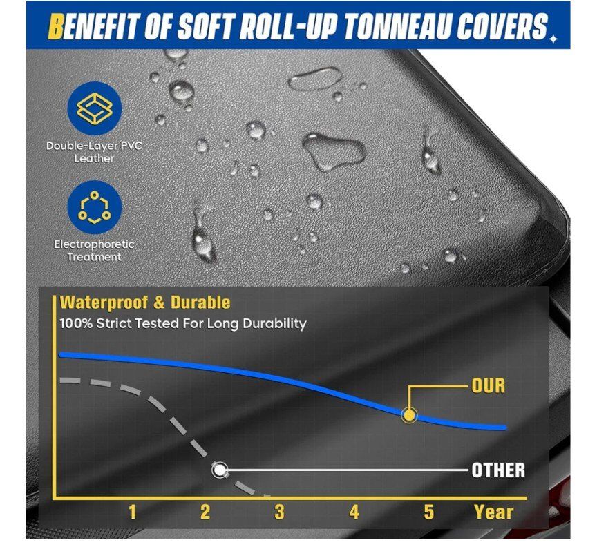 Roll-Up Design: The roll-up design allows for easy access and convenience and to fully cover your truck, allowing quick access to the truck bed when needed.