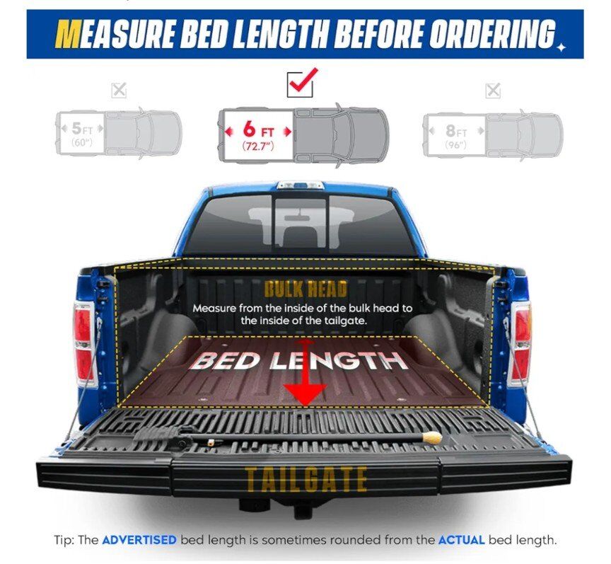 Compatible with: for Ford Ranger 2019-2023, Fleetside 6.0 ft/ 72.7 in bed.