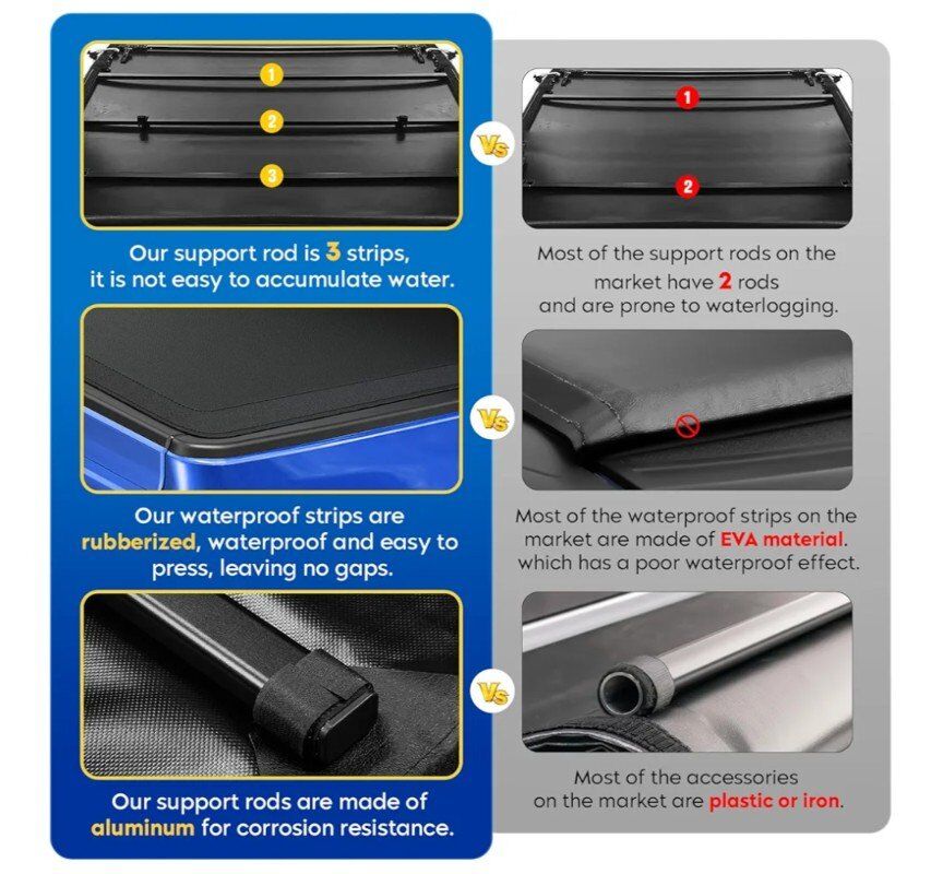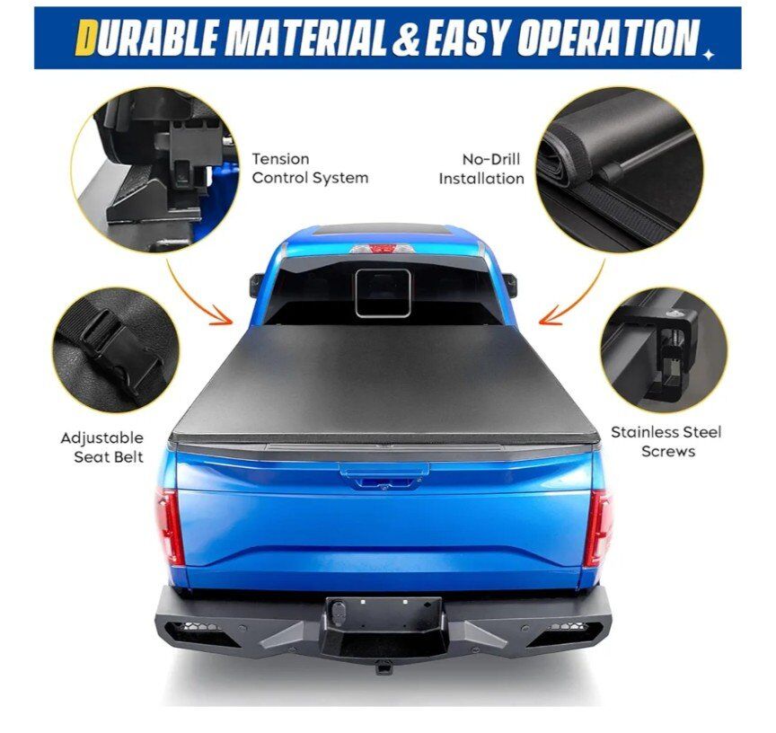 Easy to Install: This roll-up truck cover is quick and easy to install! Adjustable Tension for the Perfect Fit. No drilling or special tools are necessary. Additional installation manual.