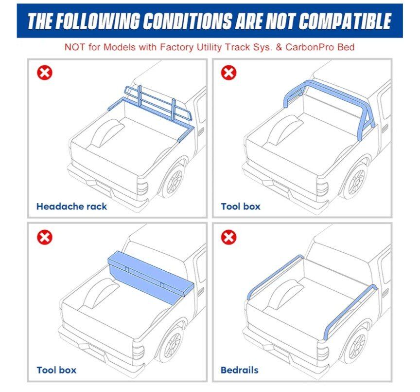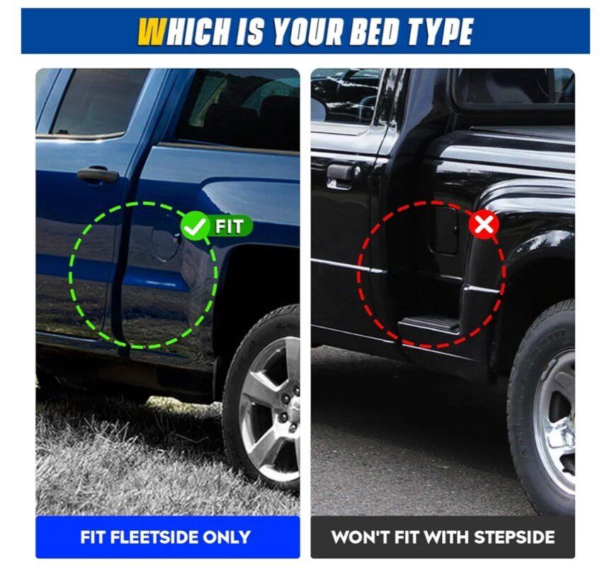 Not for Flareside/ Stepside. Not a fit for cargo rack system (need to remove before installation) and factory utility track. Pls confirm the truck bed size before ordering!