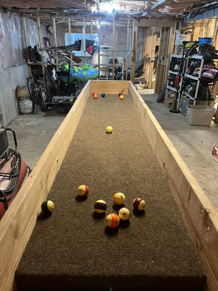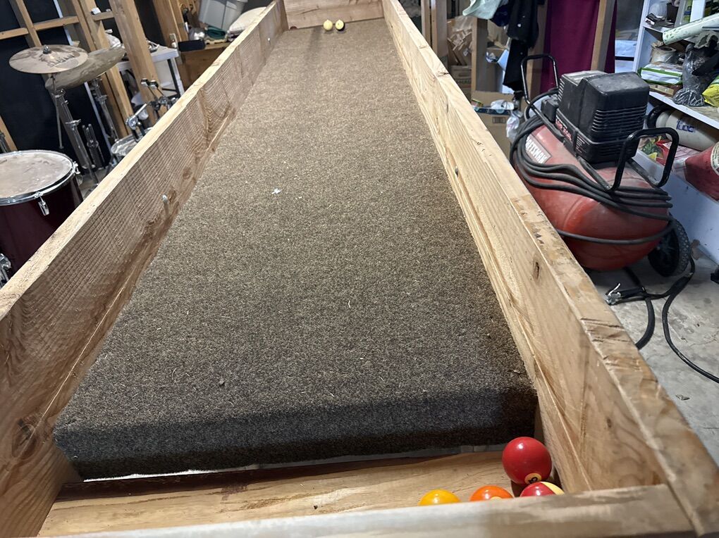All pine homemade carpet ball table. Can be used for carpet all or converted into a raised planter bed.