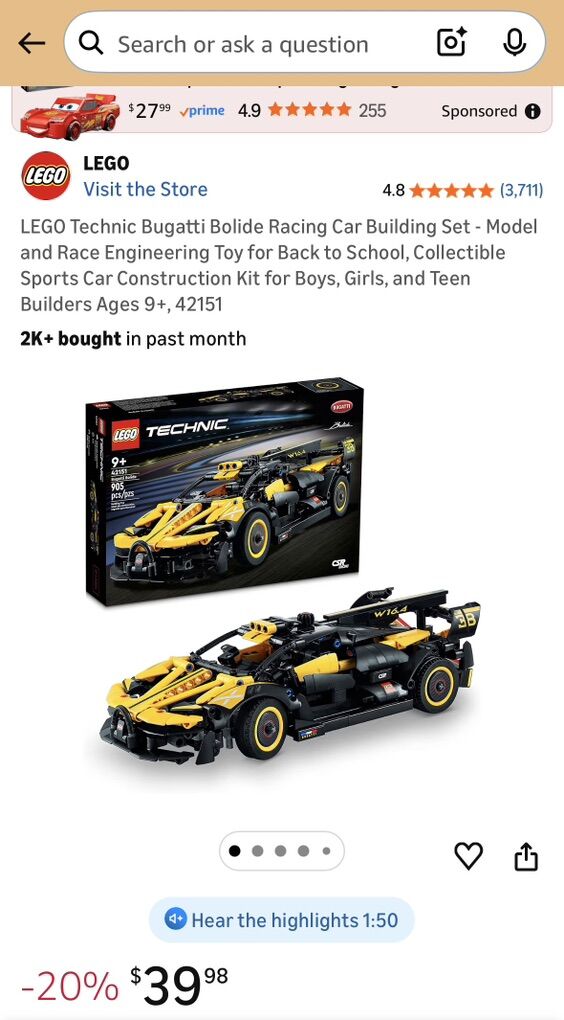 VenmoLego Technic 42151 Blonde Bugatti for $20! This has a $40 value. It’s in great condition and has been assembled one time. Let me know if you want me to disassemble it. It has all the pieces.