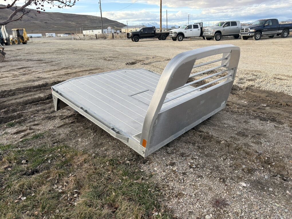 Very good condition aluminum CM flatbed with steel under frame for short bed Trucks.