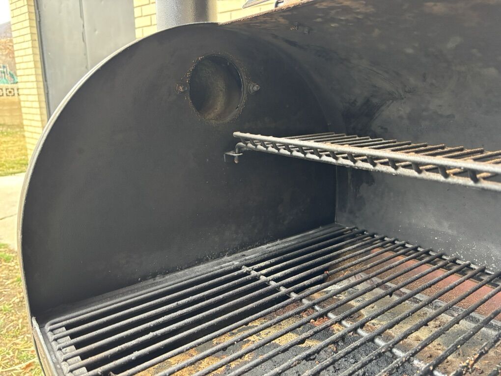 Big enough to cook a big ol brisket or two, and I’ve done think 3-4 racks of ribs at a time easily.