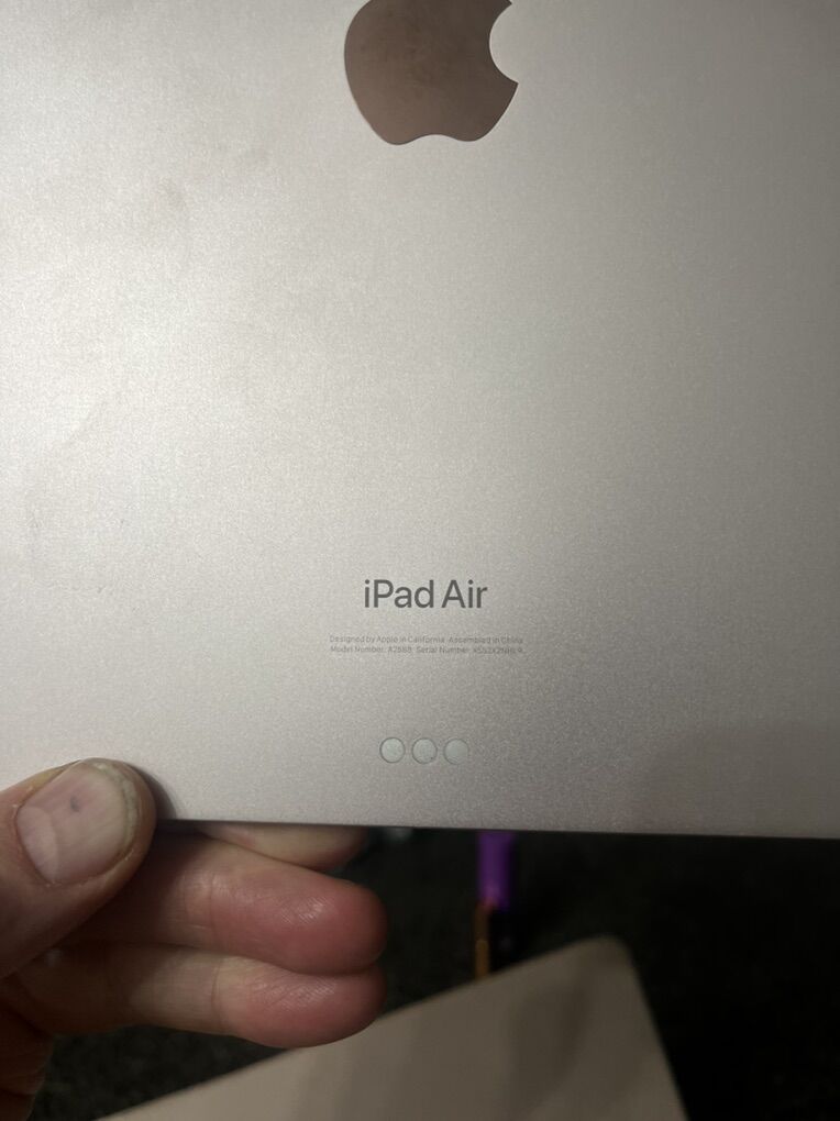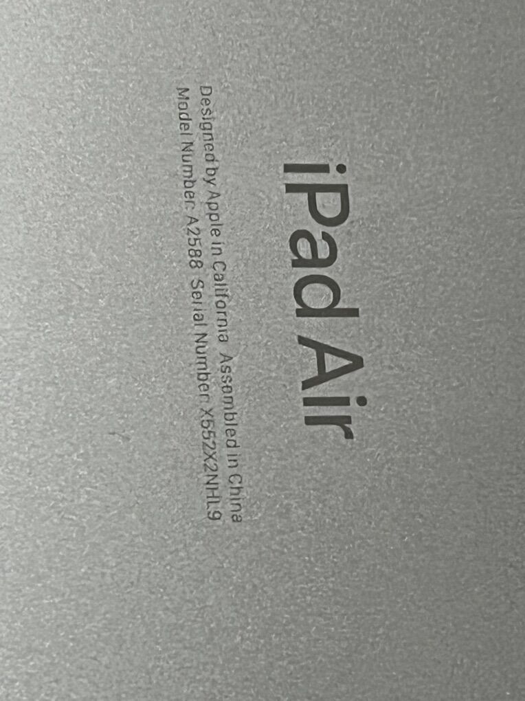 Key Details for A2588 (5th Gen iPad Air): • Performance: Apple M1 chip with 8GB RAM. • Storage: 64GB • Display: 10.9-inch Liquid Retina IPS screen (2360 x 1640 resolution). • Colors: Available in Blue, Purple, Pink, Starlight, and Space Gray. • Connectivity: Wi-Fi 6 (no cellular capability). • Security: Touch ID integrated into the top button. • Weight: Approximately 1.02 Ibs (461 grams). ®