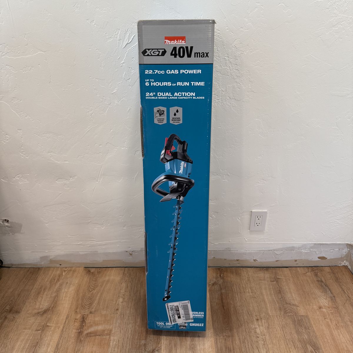 Details: Brand: Makita Model: GHU02Z Condition: Brand New – Factory Sealed 24” Hedge Trimmer Brushless motor Dual Action 6 hour run time Water Resistant 5-Position Rotating Handle Reverse Function for Clearing Jams