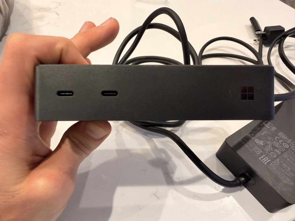 Instantly turn your Surface into a desktop PC with the next-gen ports in new Surface Dock 2. Simply plug in the Surface Connect cable to charge your device and access external monitors, a keyboard, mouse, and more. 199w power supply; longer Surface Connect cable (80 cm). Supports dual 4K at 60Hz 2 front-facing USB-C, 2 rear-facing USB-C (gen 2), 2 rear-facing USB-A, 3.5mm in/out audio jack, 1 gigabit Ethernet, Security lock support (Kensington compatible)