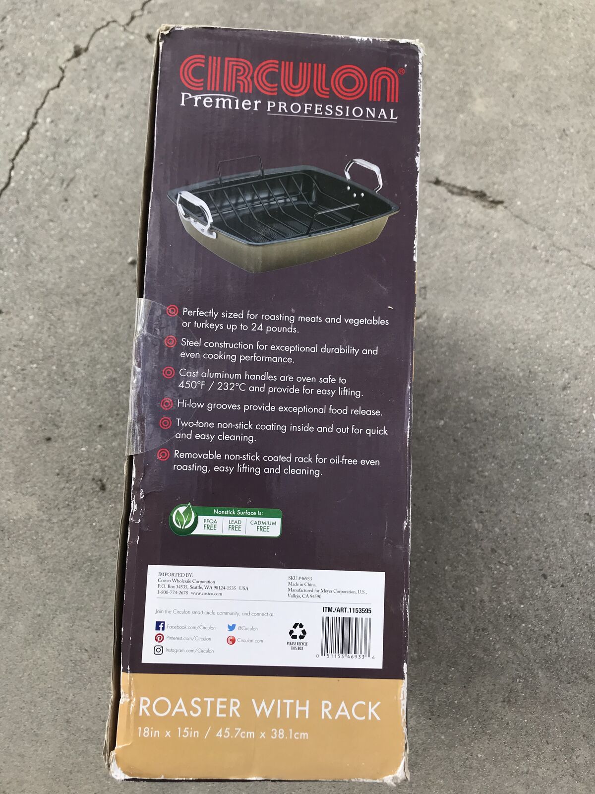ZelleHost your next holiday dinner with confidence using this brand-new Circulon Premier Professional Oval Roaster. This extra-large pan is built for durability and can accommodate a turkey up to 25 lbs.