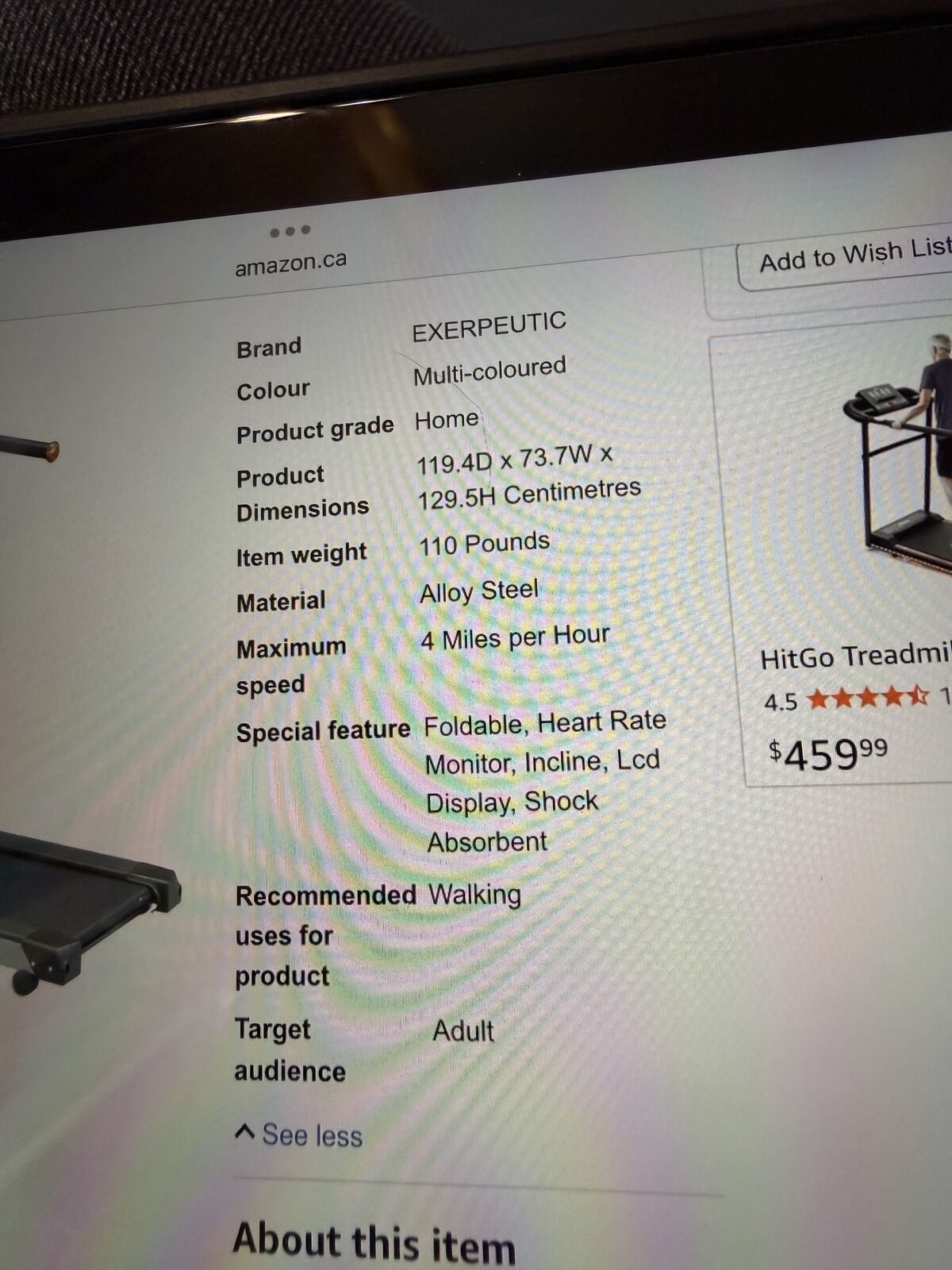 Great condition. Everything works. 2 handrails for those less steady. Emergency stop-clip you wear. Maximum speed is 4 mph which makes it safer for the elderly. Starts slowly. You can increase the speed on the handrail or the main screen. It has side rails on the track so you can step off to rest. The main screen shows distance, time spent, calories burned and speed. The on/off switch is on the front so you can't accidentally turn it off while walking. Great fo rehab after hip or knee replacement and for walking during inversions and cold/hot spells. It is quiet. Yesterday my sons moved it into the garage to make it easier for you. You will need a truck. It weighs 110 lbs, so at least 2 strong people. (I cannot help.) It needs someone who can bend over to scrub the dust off of the tread to make it look new. Please look at all the photos for more details. Text only 801-979-6704. Cash only.
