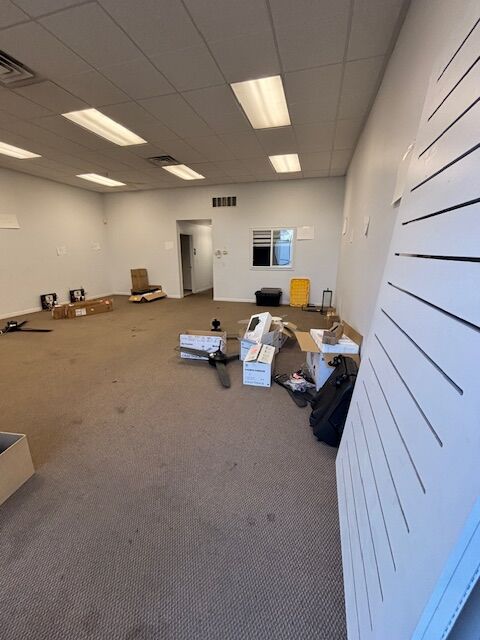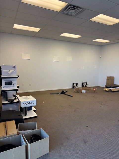 This well-designed commercial suite is perfectly suited for a small business seeking a smart balance of office, showroom, and warehouse functionality. The warehouse component offers approximately 1,450 SF with an impressive nearly 17-foot clear height, ideal for efficient pallet racking, shelving, and vertical storage. A convenient grade-level garage door supports seamless shipping and receiving operations.