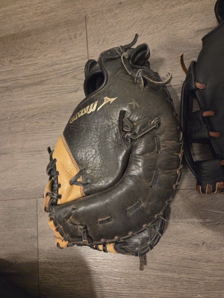 Left hand (throw right) $100 for both gloves smaller: Mizuno GXF 101 approx 10.5"