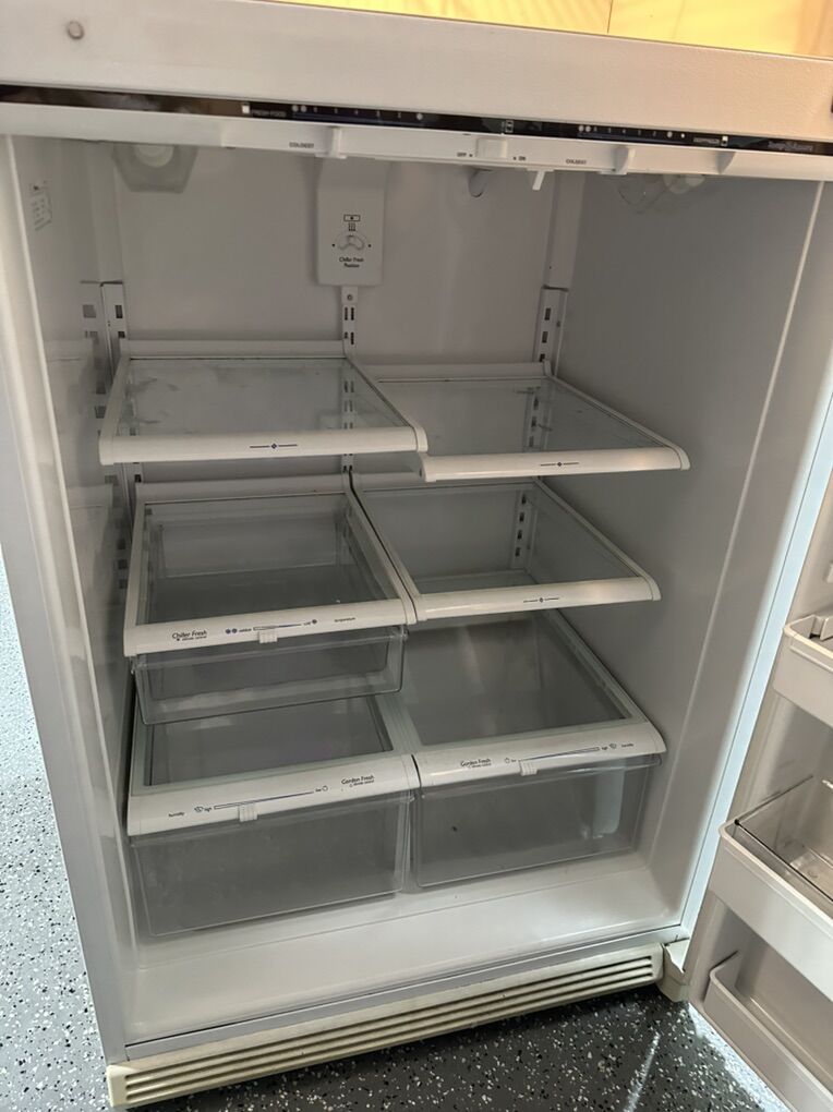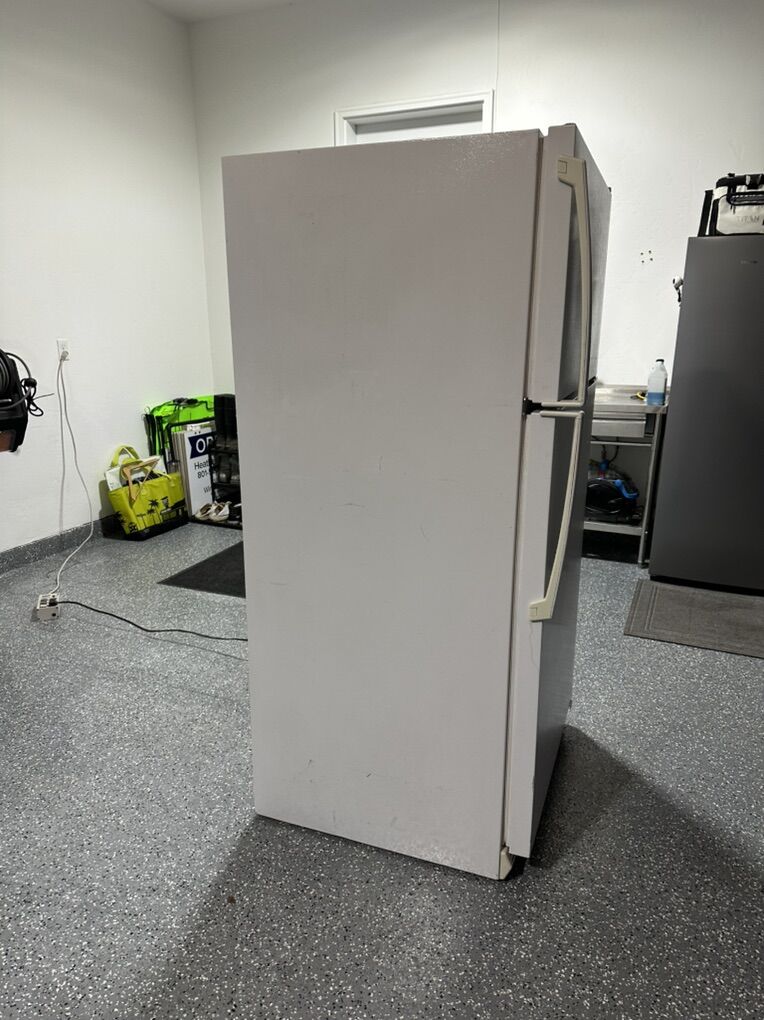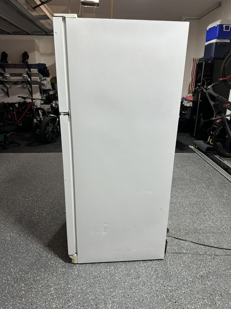 VenmoAmana Top Freezer Refridgerator with Ice Maker Color White - In good condition works good - the bottom needs a new light build $50