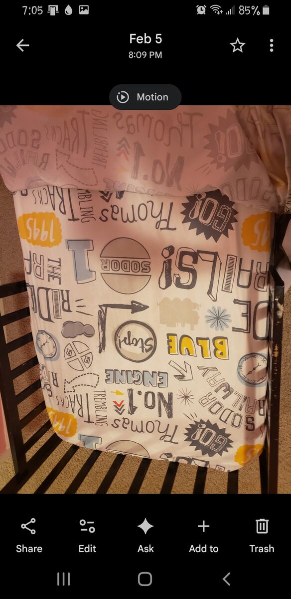VenmoToddler bed with Thomas the train fitted and flat sheet with double sided comforter and 3 extra fitted sheets