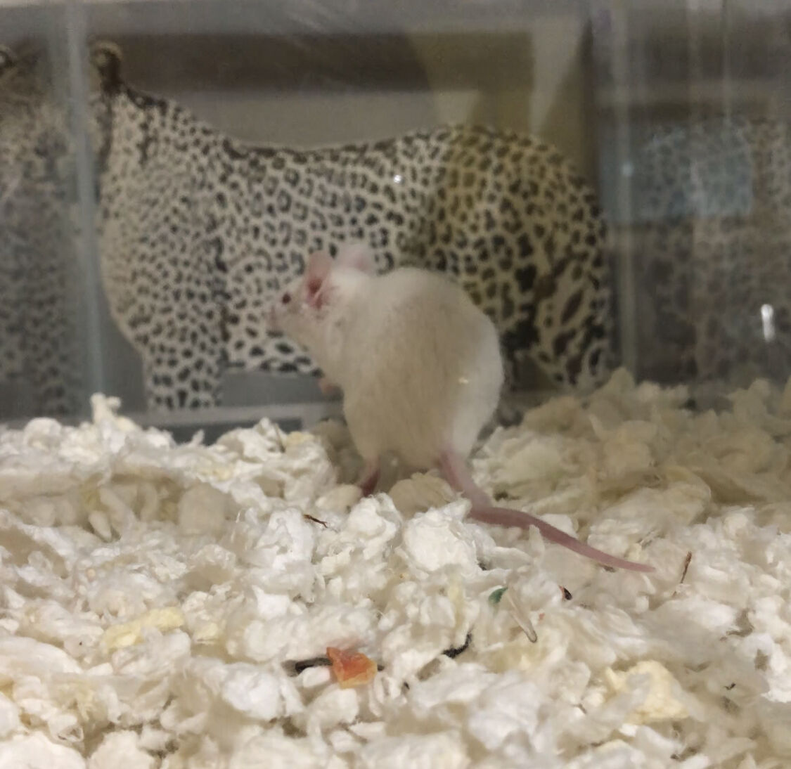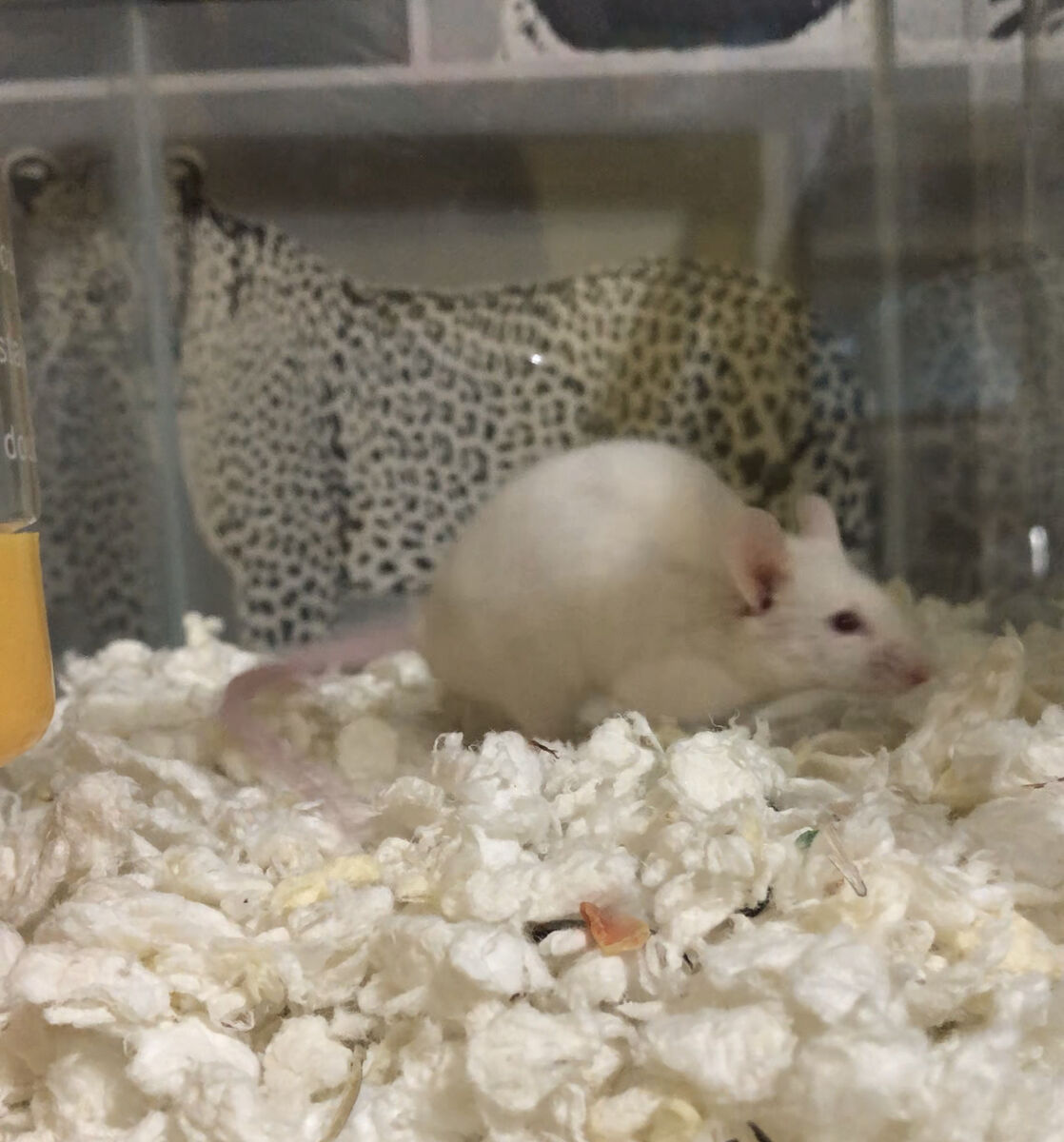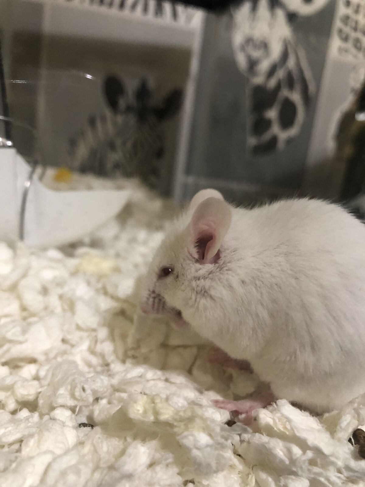 Two male white mice. They have been kept as pets, but they are feeder mice. If you want to keep them as pets, you can take the cages as well.