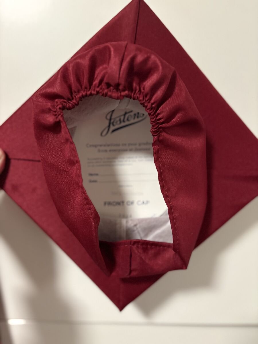 Maroon cap and gown thats like new and fits someone between the height of 5' 04" - 5' 06"