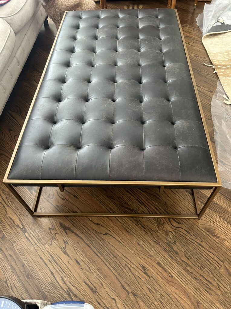 Tufted Leather Ottoman Coffee Table. Retail price $2,700. Brand new condition. This is a stunning statement piece of furniture. Located in South Jordan near 11200 s and 1300 west. Cash/Venmo
