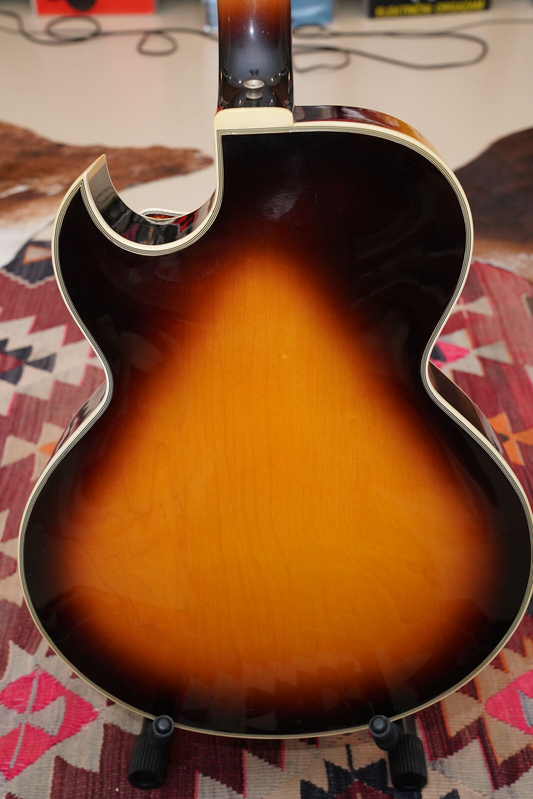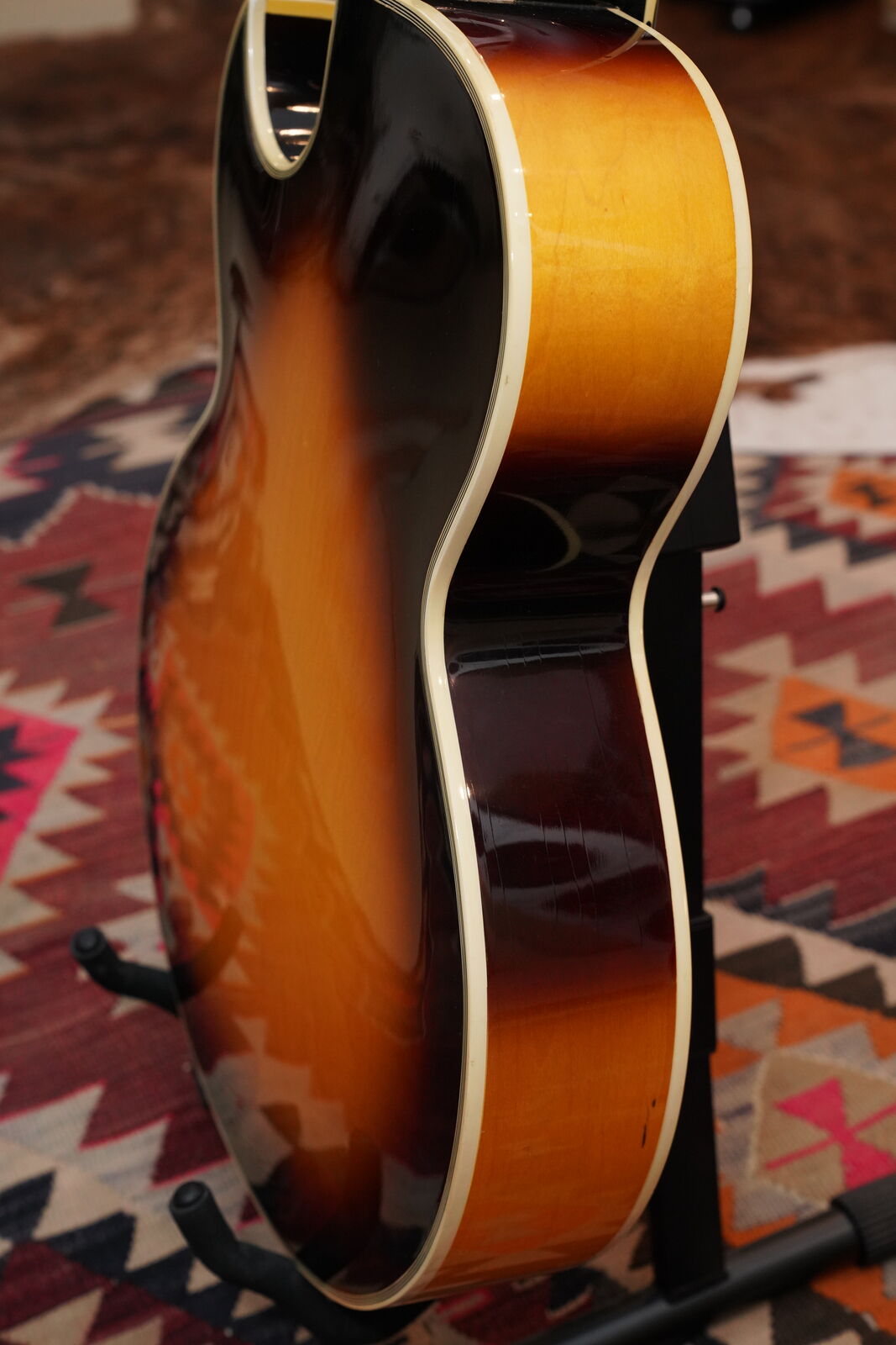 This is a particularly fine playing instrument made during the Norlin years. There are quite a few refined appointments including seven ply binding on both the front and the back, flower and vine inlay on the headstock, slotted block fretboard inlays and a five ply bound pick guard.