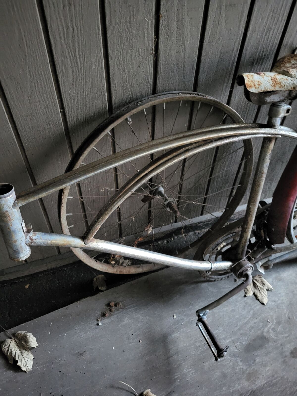 Sears Starliner cruiser bike, made from 64 to 68 by Murray. Chrome finish on the frame. I have both rims. Front is out of true. I dont have the fork, stem or handlebars. Sold just as you see it. Make a cash offer please. South Salt Lake. Call me at 385-285-4630.