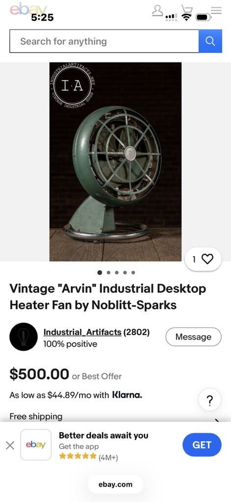 This is so cool. Retro looking and futuristic looking at the same time. This is an Arvin fan-heater by Noblitt Sparks. Make a great addition to any man cave or when you want to be different from the crowd. These sell upwards of $500. First $200 cash gets it. Cash only text only 801-979-0820